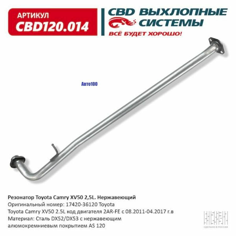 Резонатор Toyota Camry XV50 2,5L. Нержавеющий. CBD120.014 интересное: