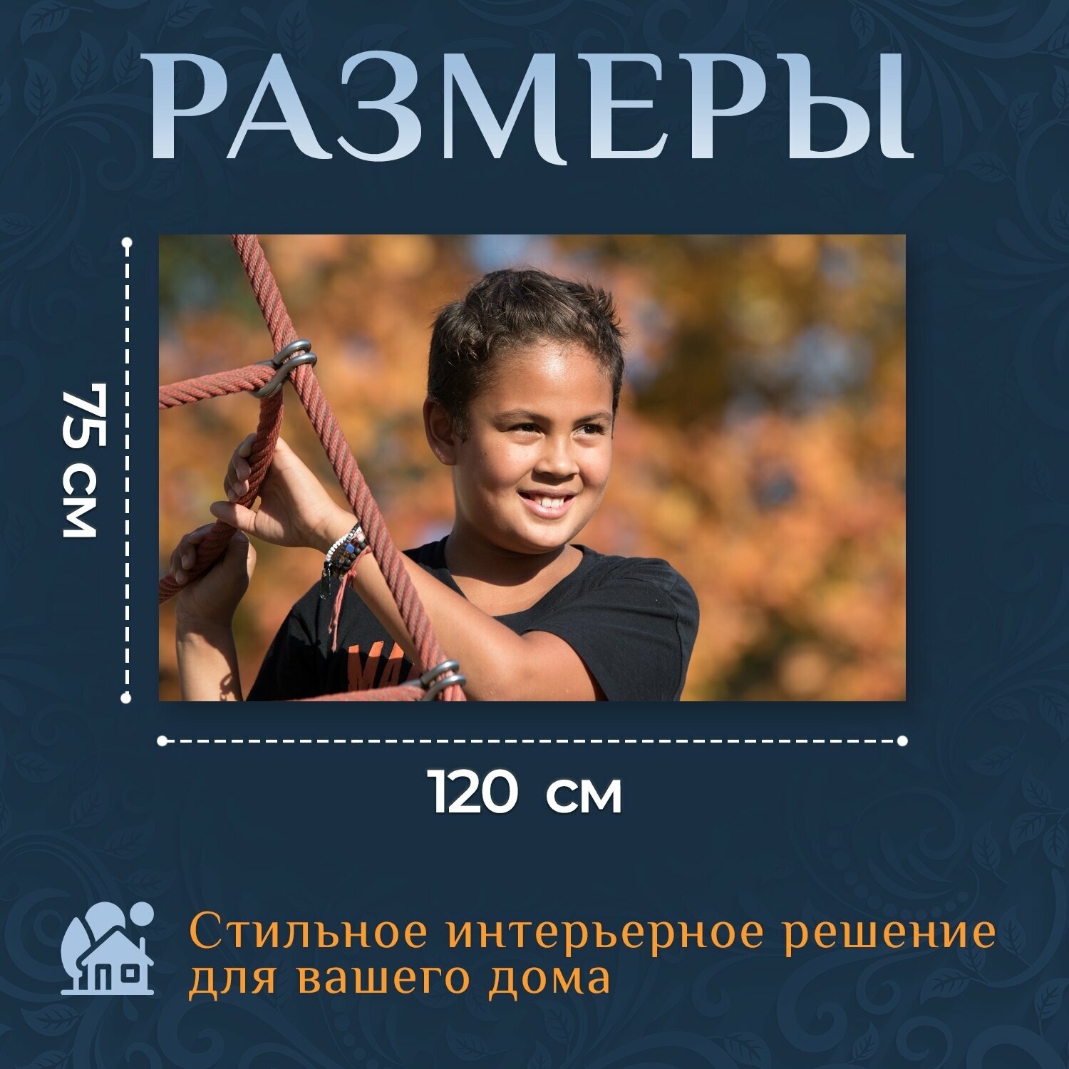 Купить Картина на холсте "Мальчик, улыбка, ребенок" на подрамнике 120х75 см. для интерьера