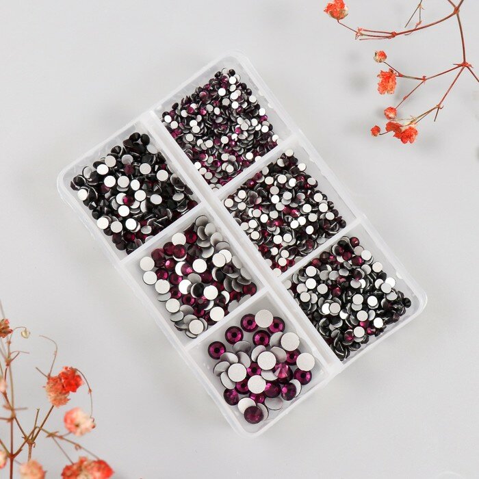Купить Декор для творчества стекло "Стразы. Тёмно-фиолетовый" d=2-4,8 мм н-р 1188 шт 6х8х1,5 см