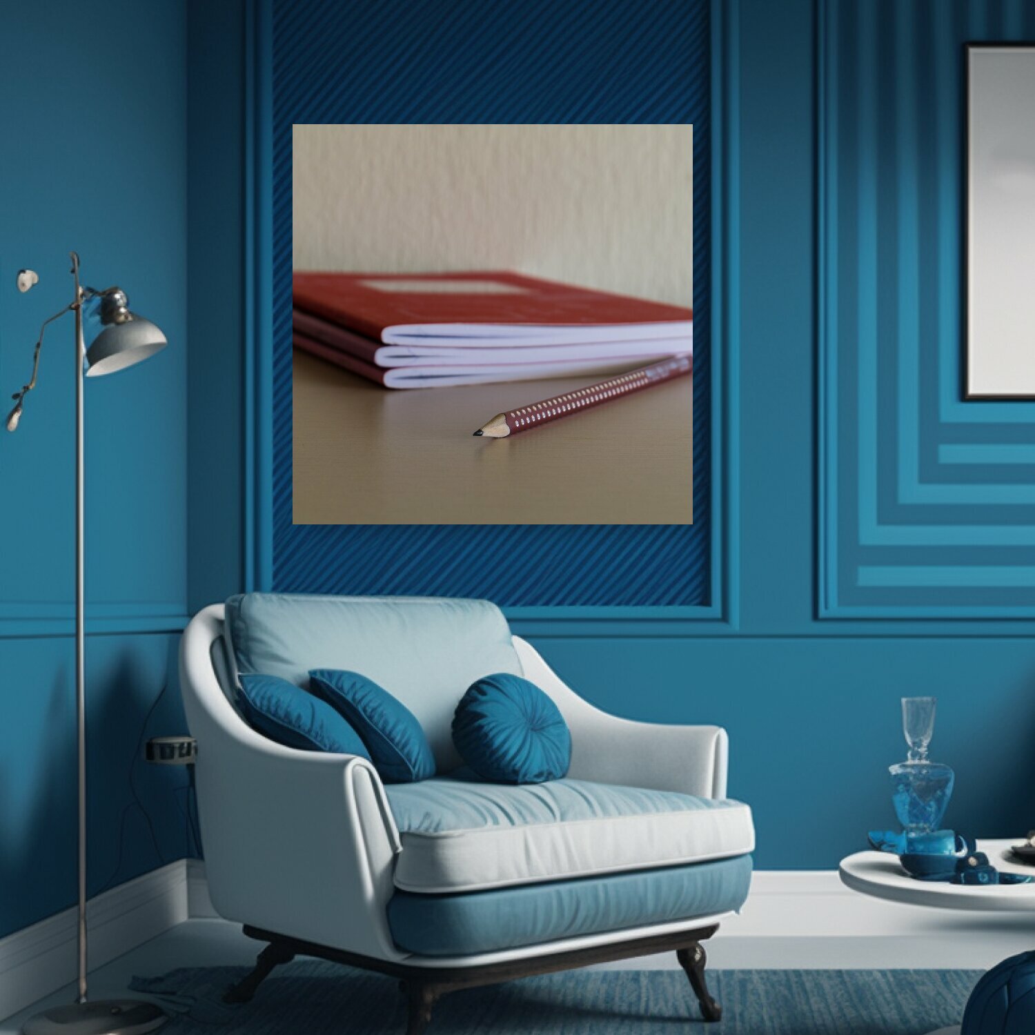 Купить Картина на холсте "Карандаш, ноутбук, стол письменный" на подрамнике 75х75 см. для интерьера