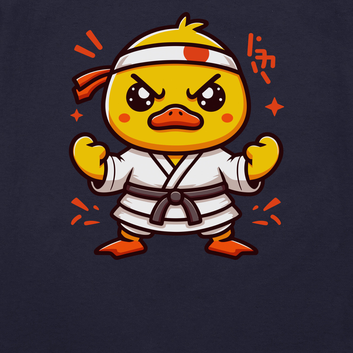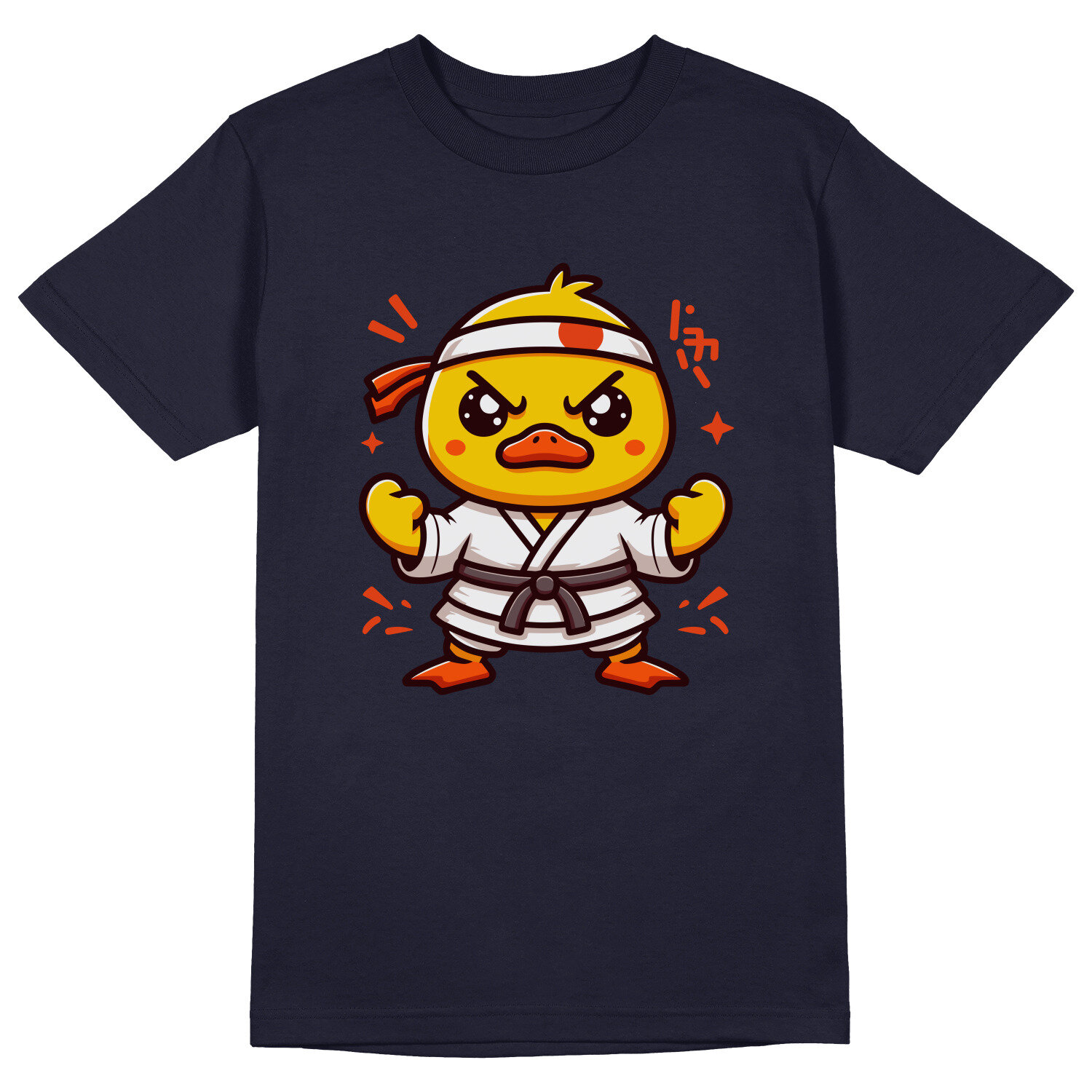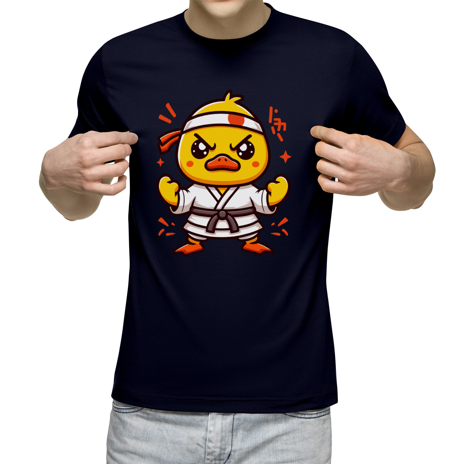 Купить Мужская футболка «Желтая утка в кимоно для карате, самбо, дзюдо.» (M, темно-синий)