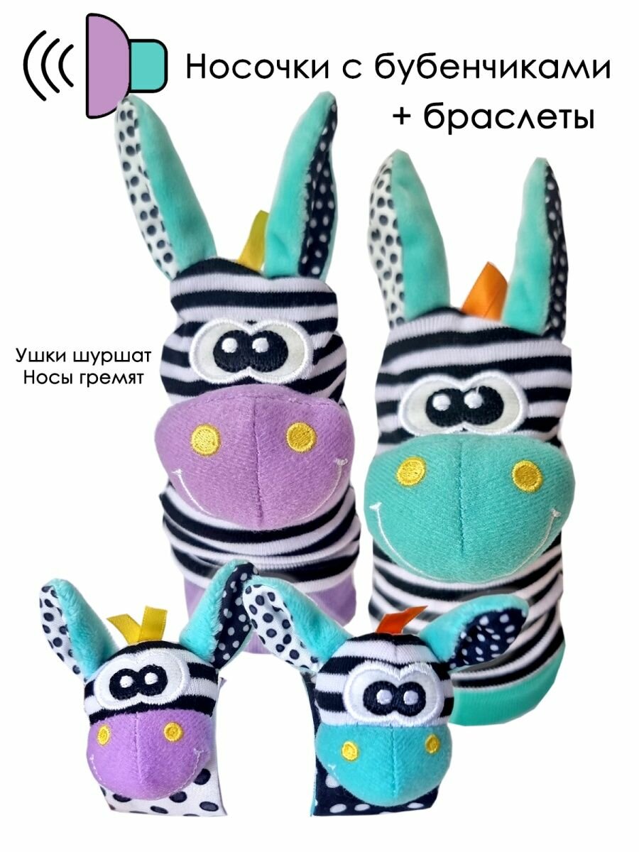 Носки + браслеты для малышей "Зебры", набор с бубенчиками