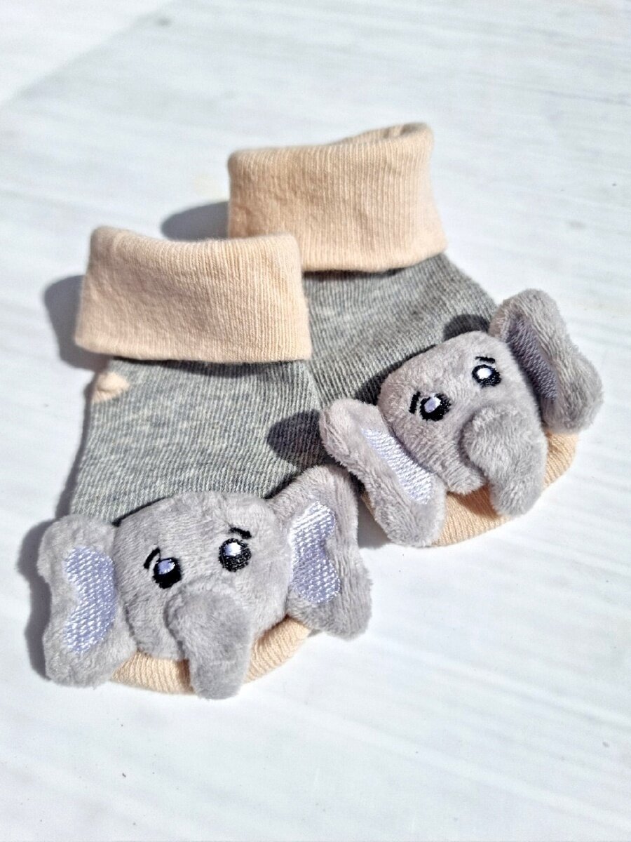 Носки - погремушки для малышей Слоники