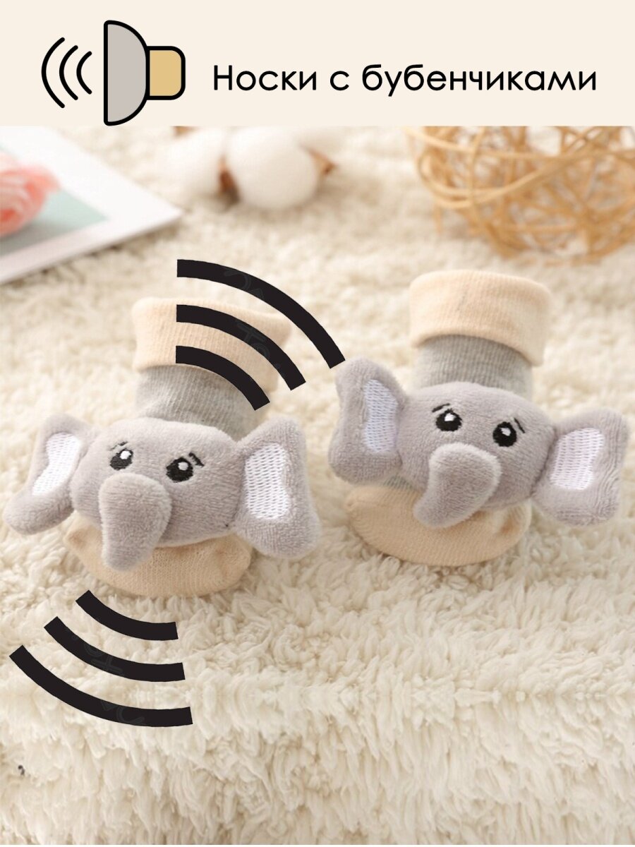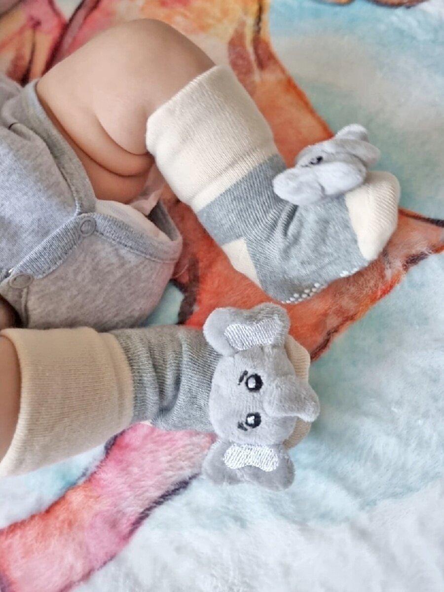 Купить Носочки - погремушки для новорожденных игрушки "Серые слоники"