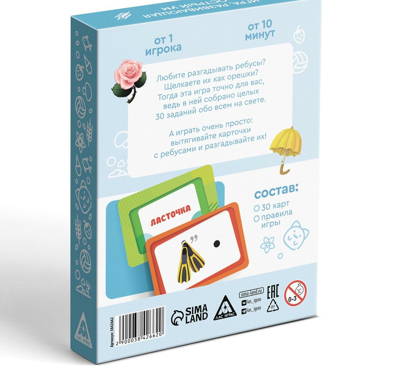Ниже Вы можете прочитать отзывы на Развивающая игра "Весёлые ребусы", 30 карт, ознакомится с подробными характеристиками, посмотреть интересные обзоры и фотографии на Развивающая игра "Весёлые ребусы", 30 карт.