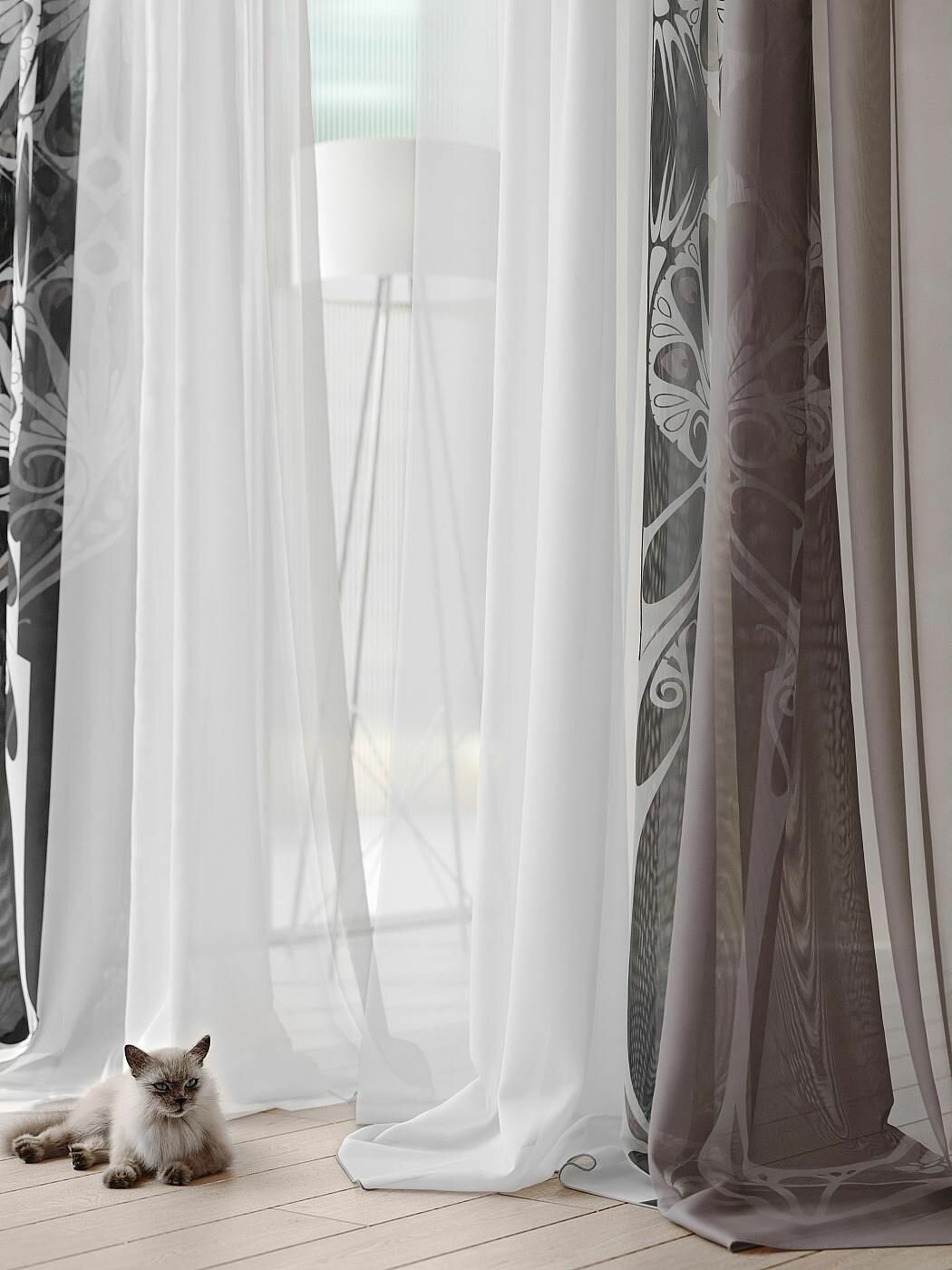 Купить Комплекты штор AT HOME Велиринет высота 250 см, ширина 300 см, крепление - шторная лента, Белый