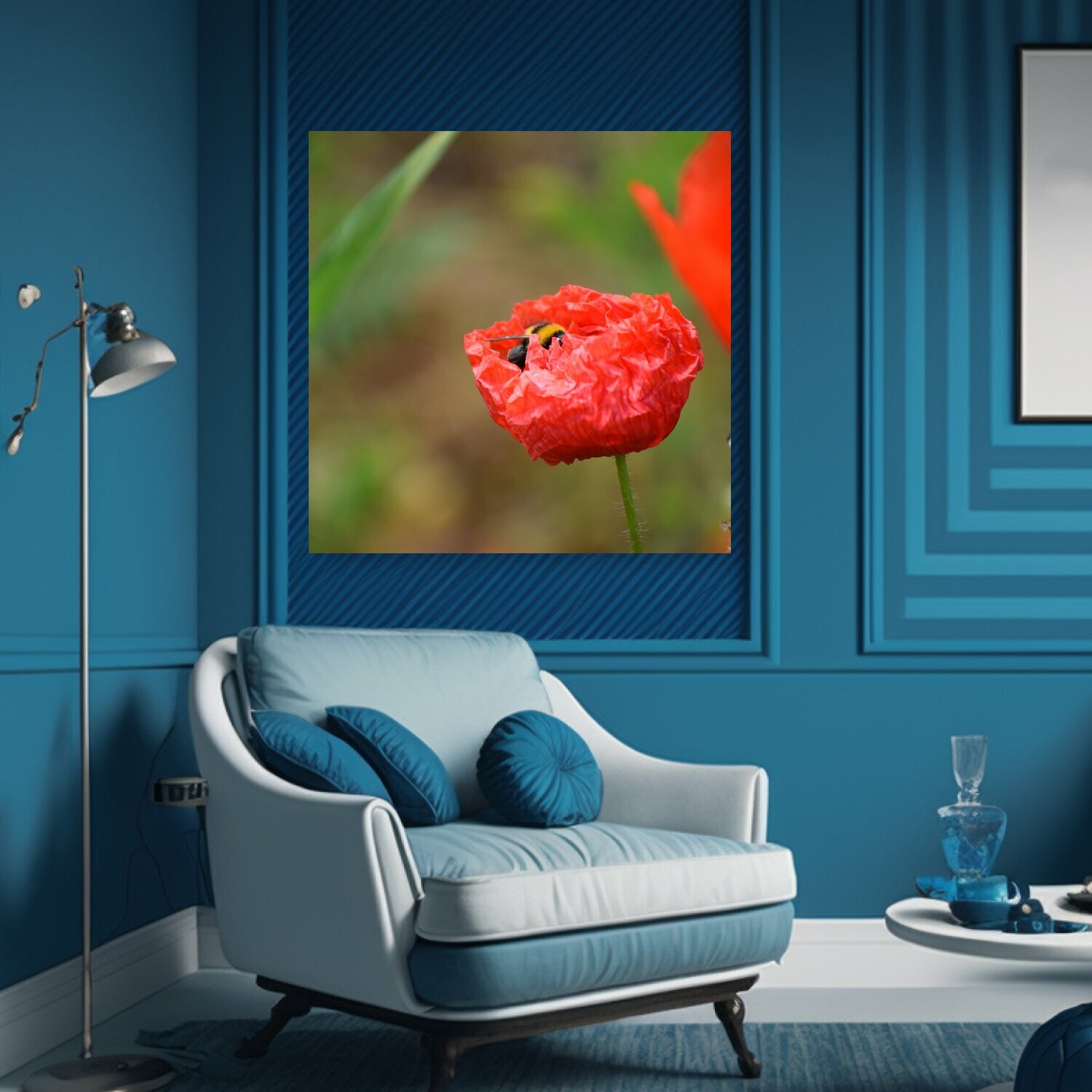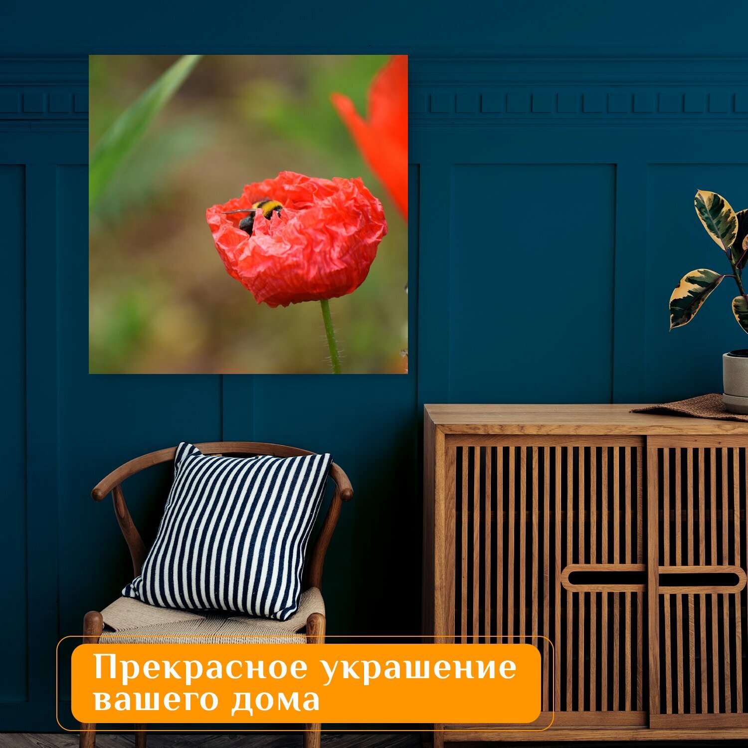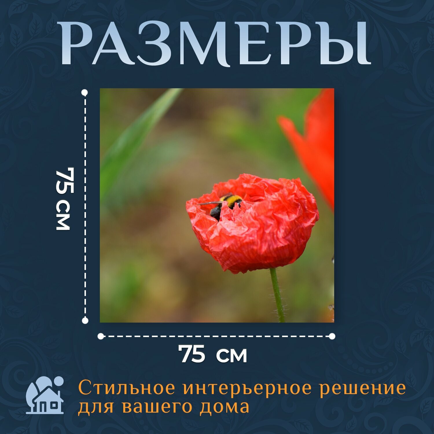 Картина на холсте "Мак, весна, красный" на подрамнике 75х75 см. для интерьера интересное: