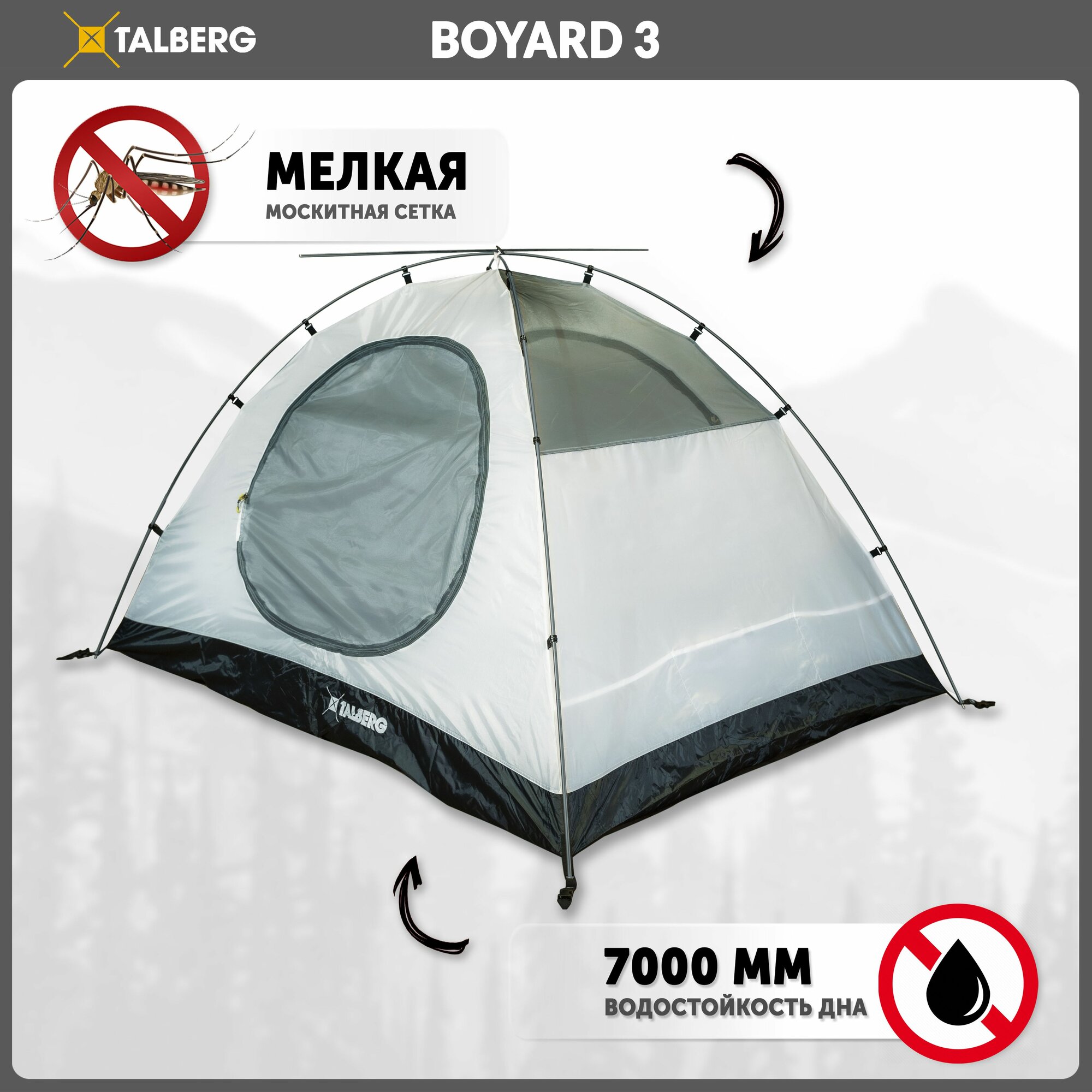 Палатка Talberg Boyard 3 размер 360х220х130 см , тент 5000 мм