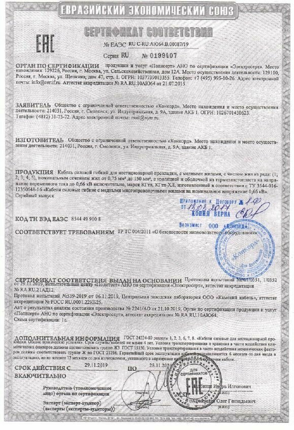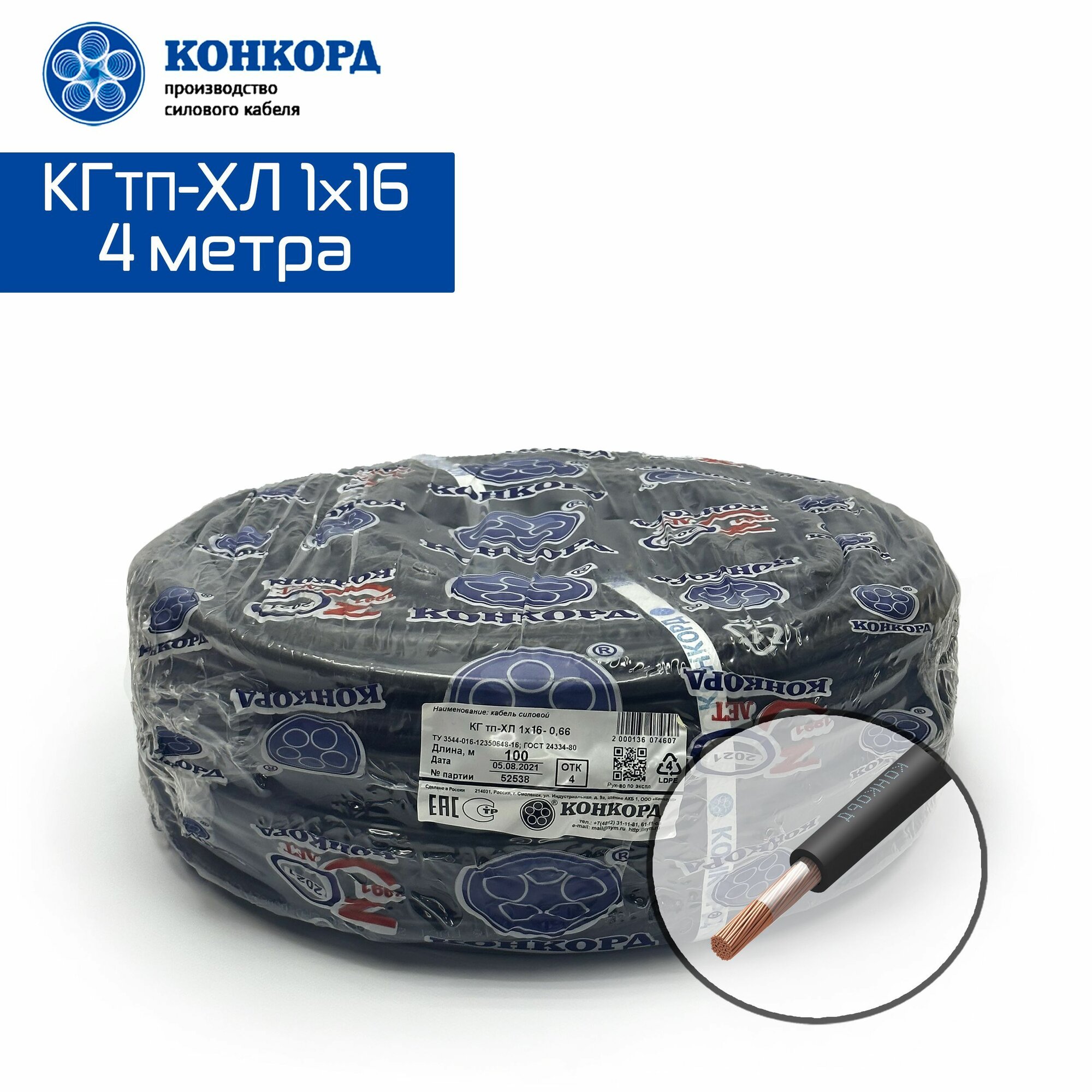 Кабель силовой морозостойкий кгтп-хл Конкорд 1х16 4метра интересное: