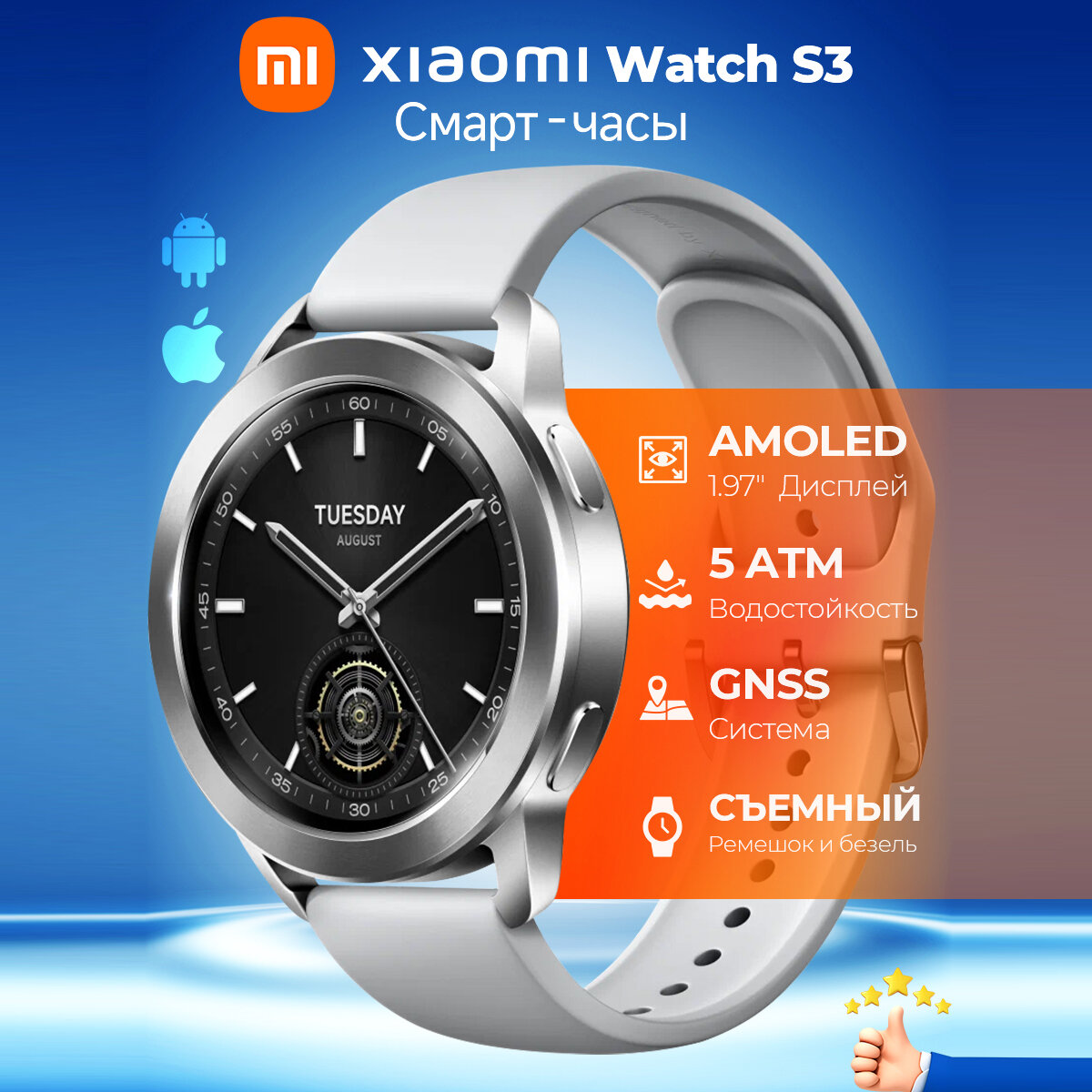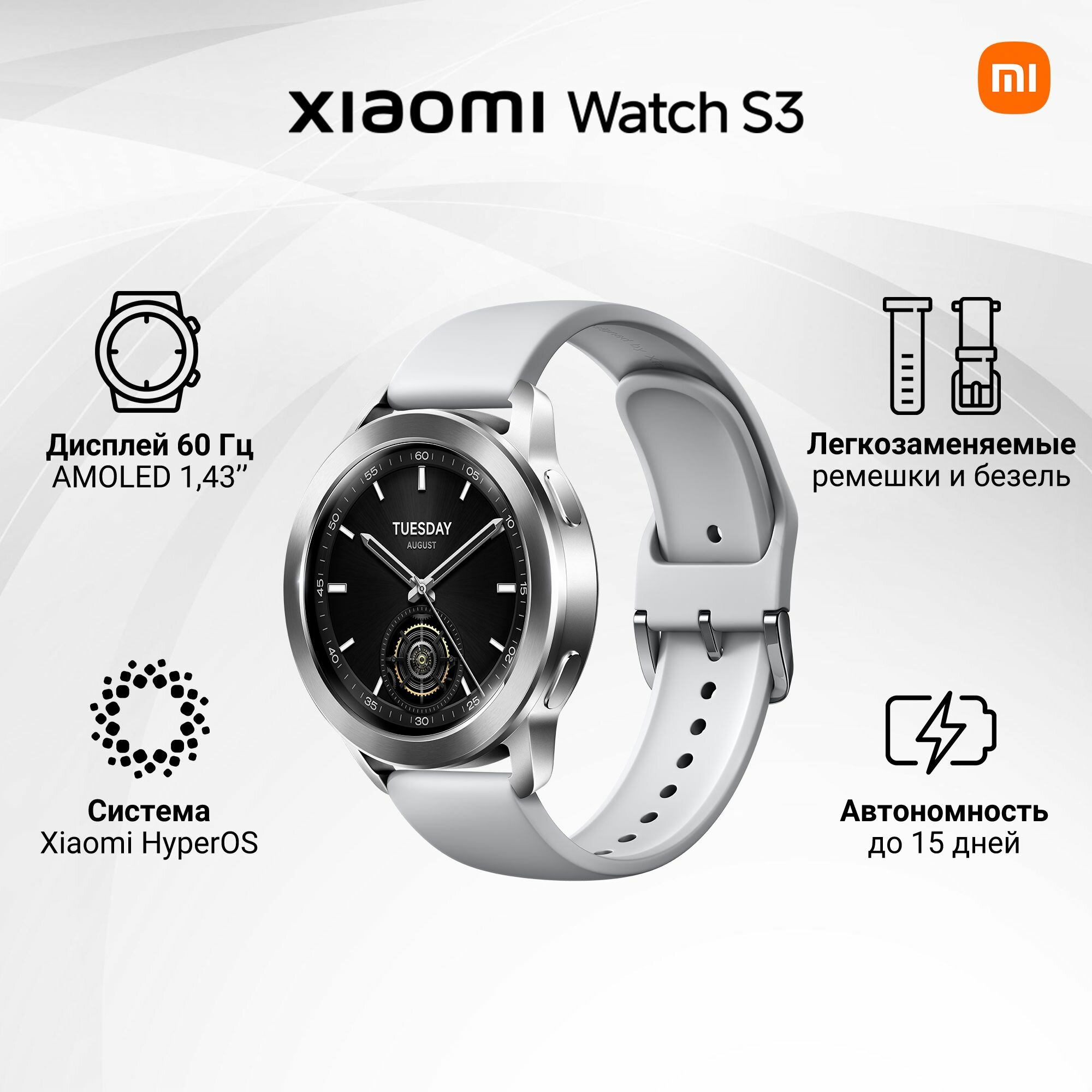 Умные часы Xiaomi Watch S3 47 мм GPS Global для РФ, серебристый