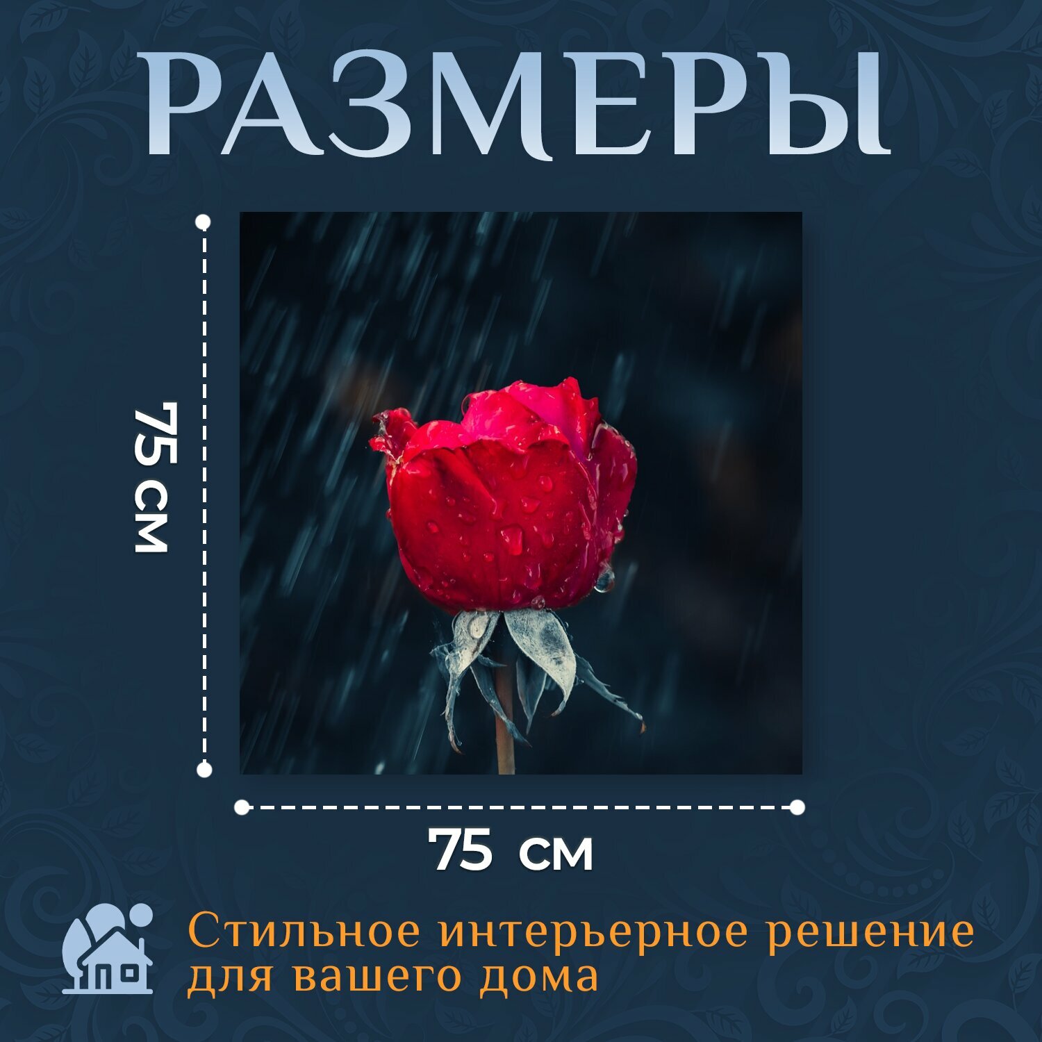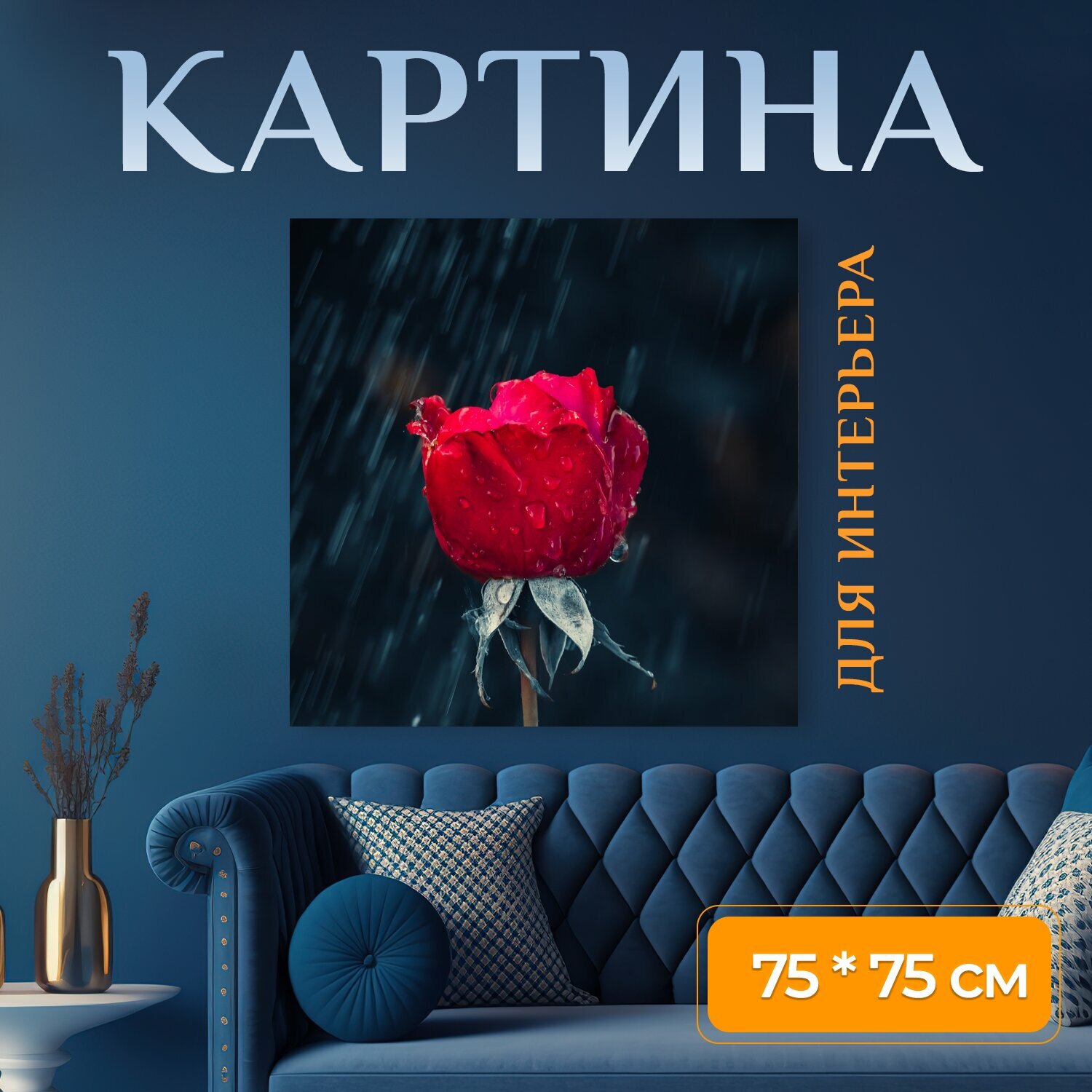 Картина на холсте "Роза, красный, капли" на подрамнике 75х75 см. для интерьера интересное: