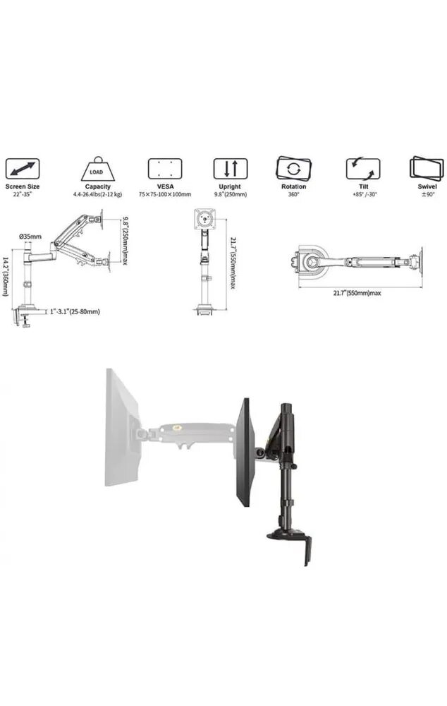 Купить Кронштейн для монитора NB H100 настольное с газлифтом