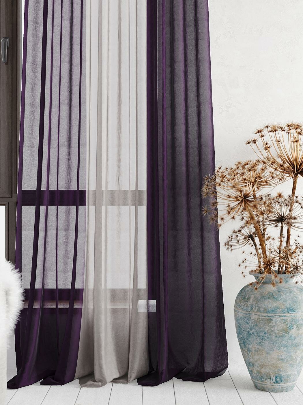Тюль AT HOME Лаури (фиолетово-серый) - 230 см высота 230 см, ширина 300 см, крепление - шторная лента, Фиолетовый/сирень интересное: