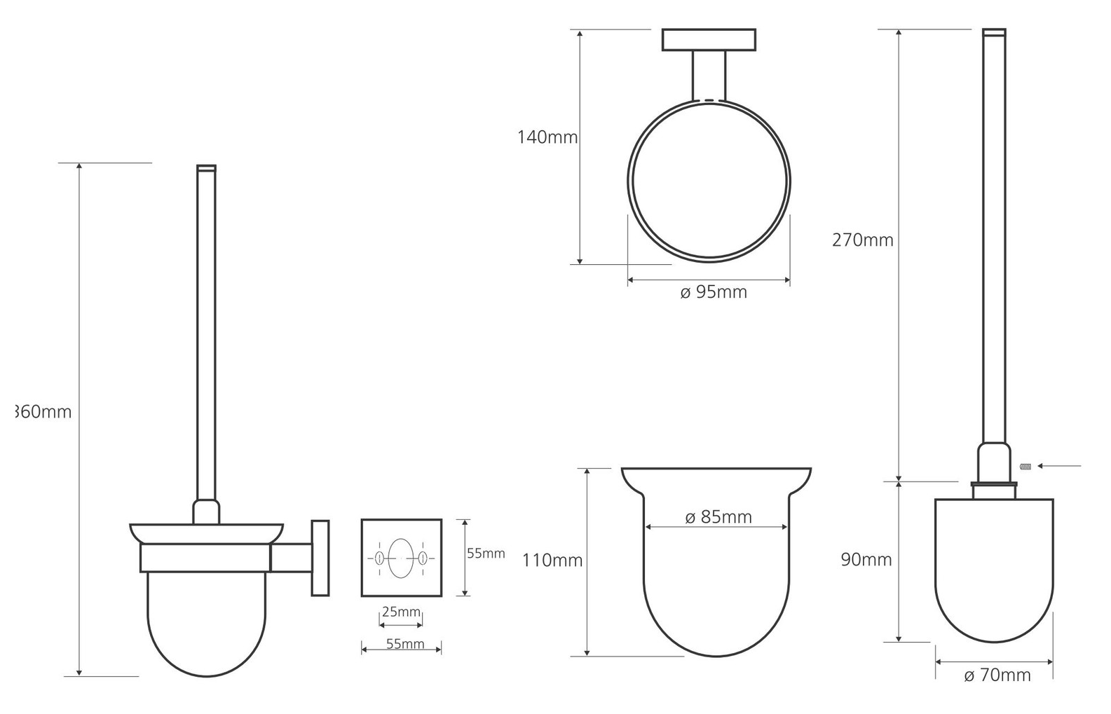 Ёрш настенный из нержавеющей стали, черный , GFmark