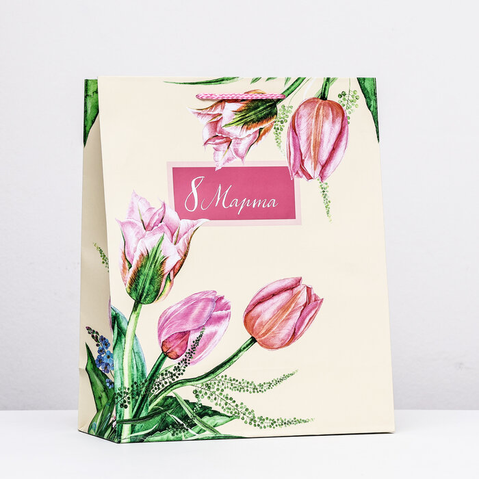 Пакет подарочный "8 марта", тюльпаны на желтом, 26 х 32 х 12 см интересное: