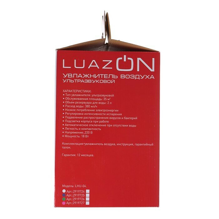 Luazon Home Увлажнитель воздуха Luazon LHU-04, ультразвуковой, 18 Вт, 2 л, 35 м2, белый