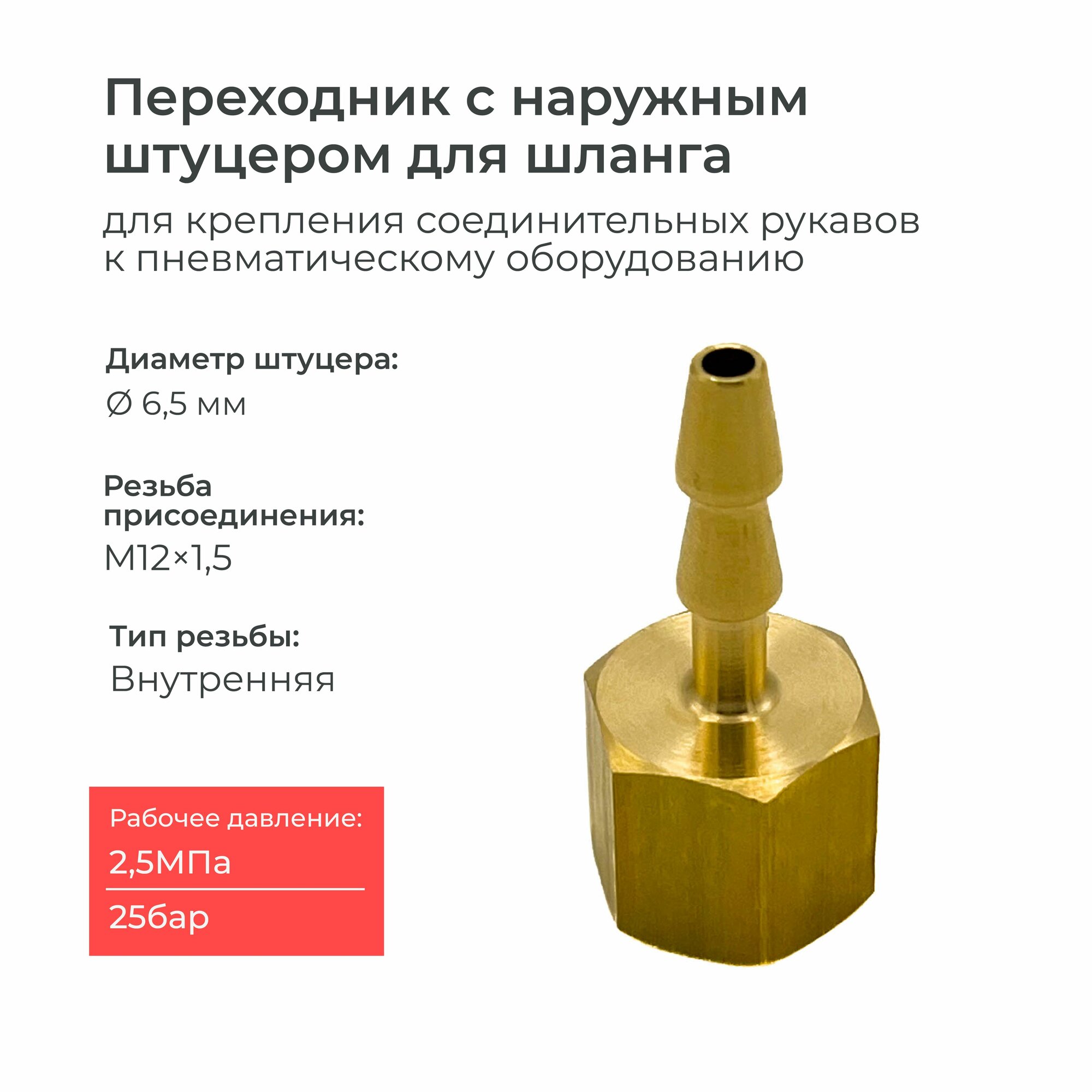 Купить Штуцер ёлочка с внутренней резьбы М12 на шланг 6/6,5 мм