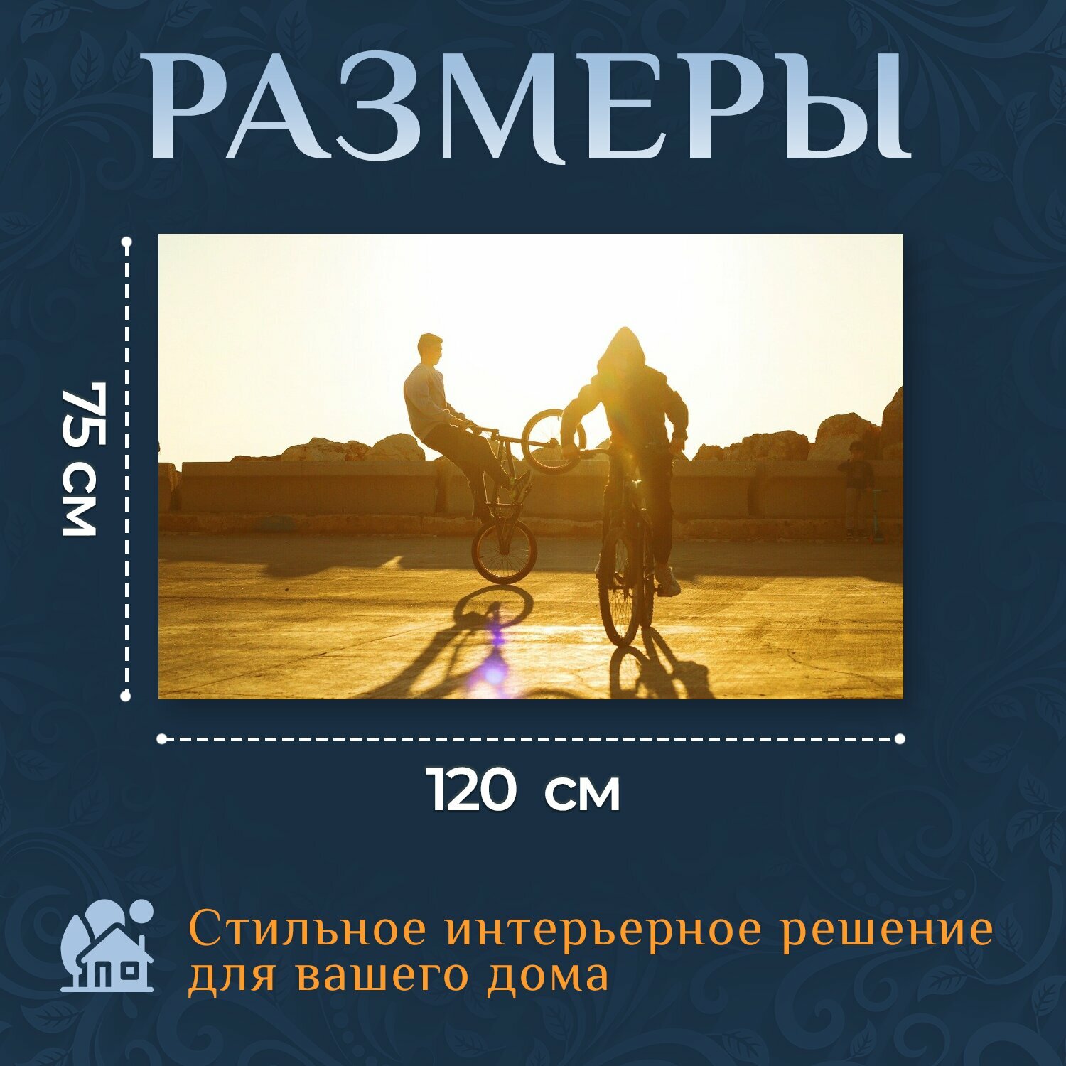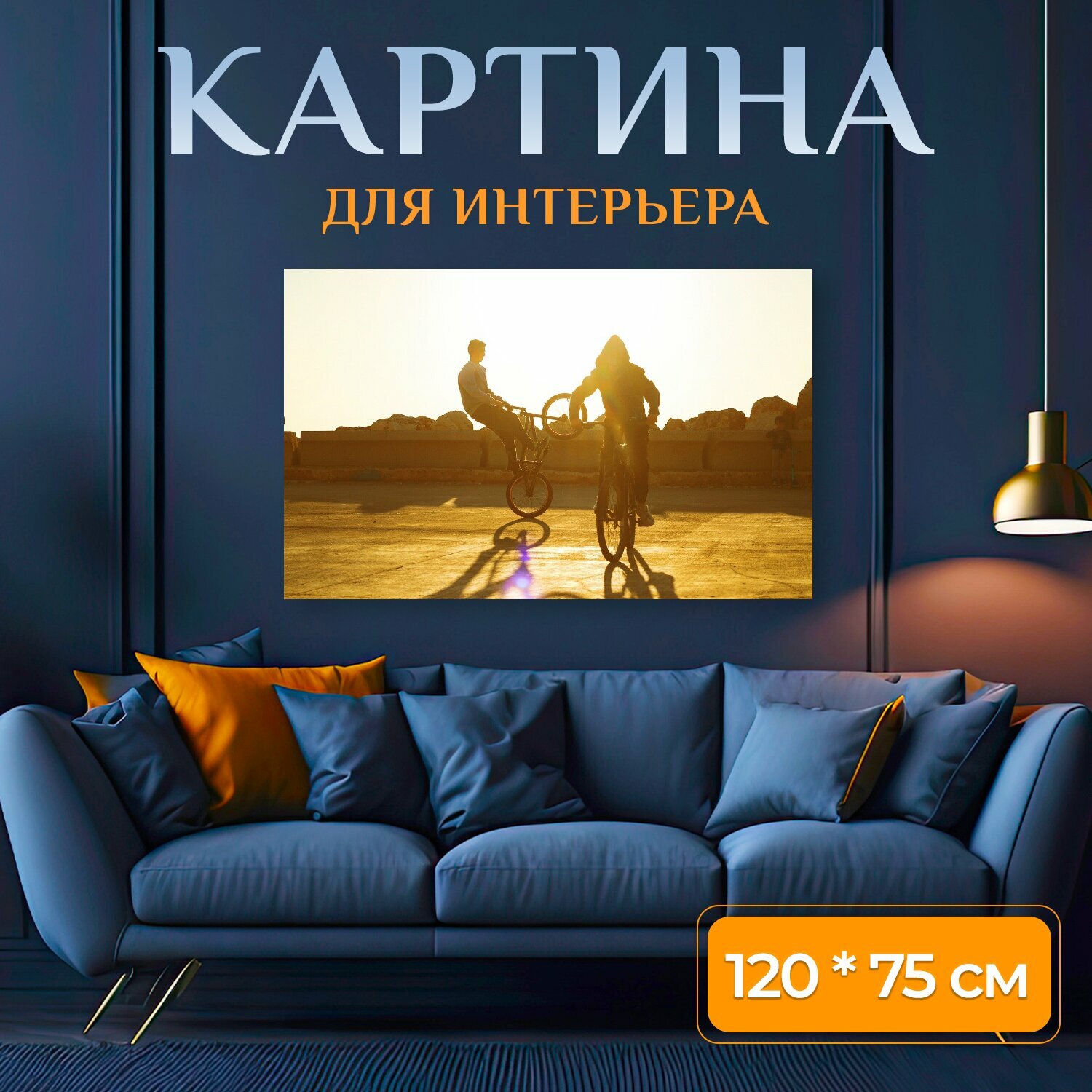 Картина на холсте "Велосипед, спорт, езда на велосипеде" на подрамнике 120х75 см. для интерьера интересное: