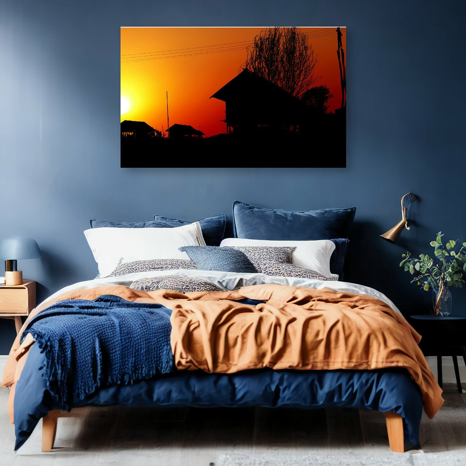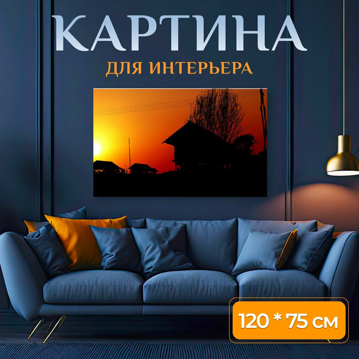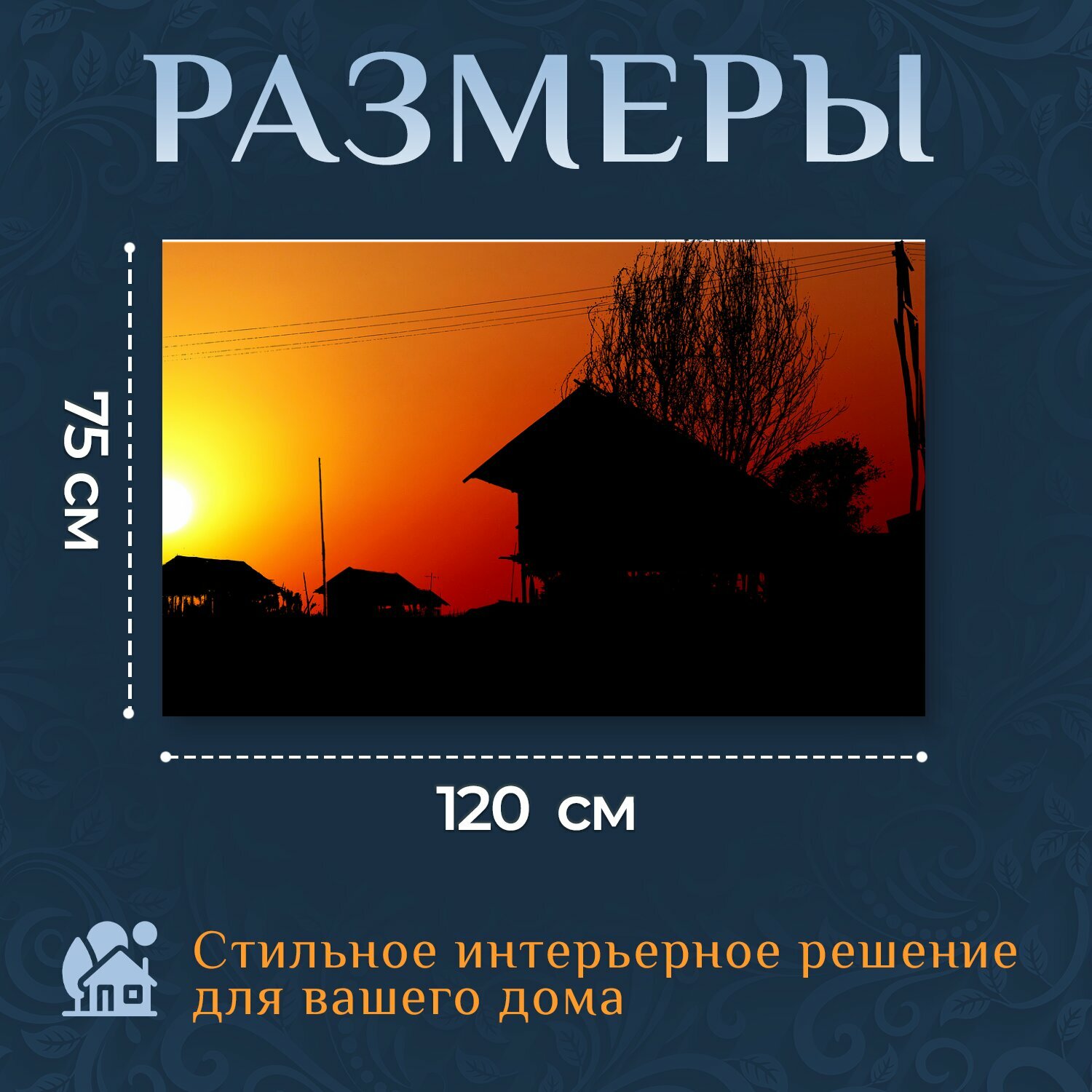 Купить Картина на холсте "Заход солнца, городок, азия" на подрамнике 120х75 см. для интерьера