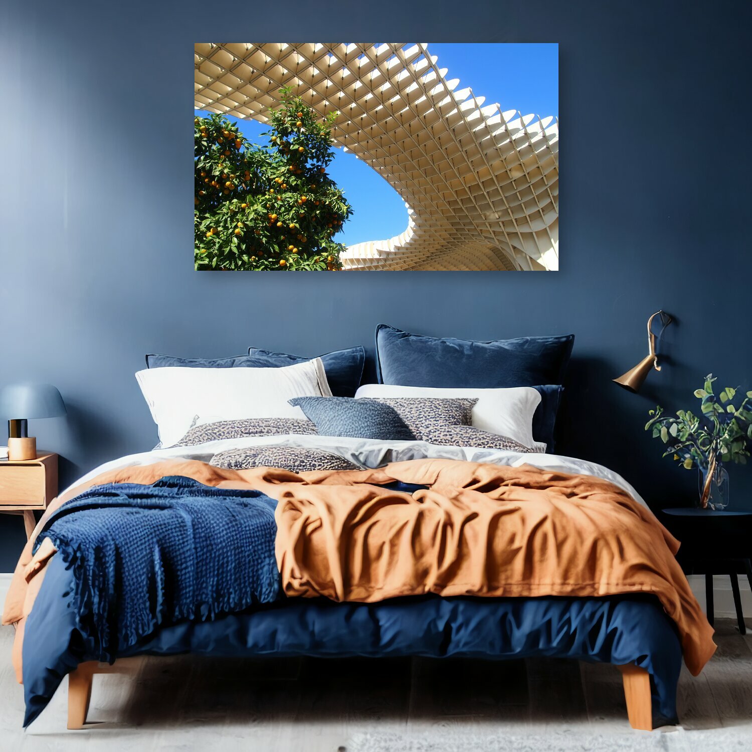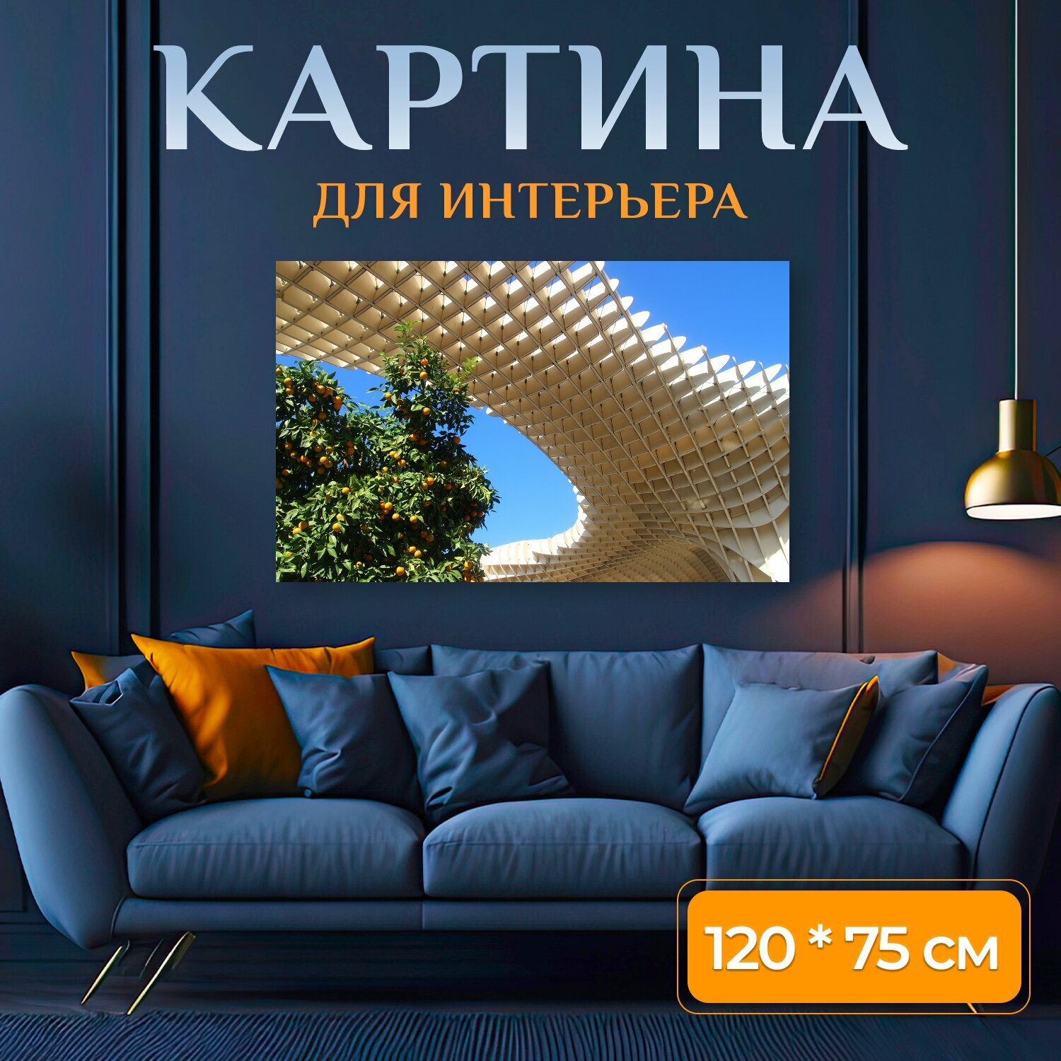 Картина на холсте "Метрополь зонтик, севилья, апельсиновое дерево" на подрамнике 120х75 см. для интерьера интересное: