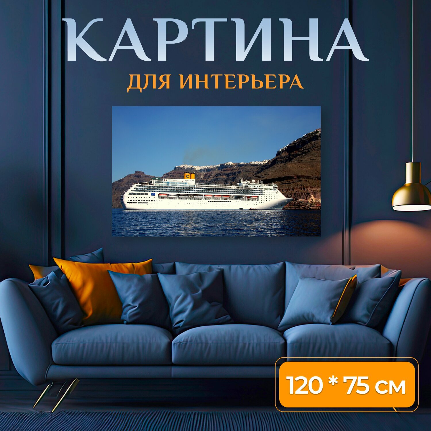 Купить Картина на холсте "Санторин, греческий остров, киклады" на подрамнике 120х75 см. для интерьера