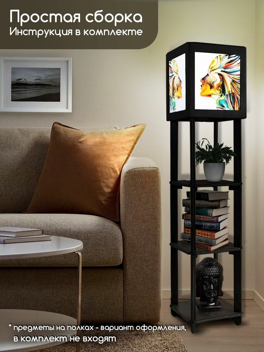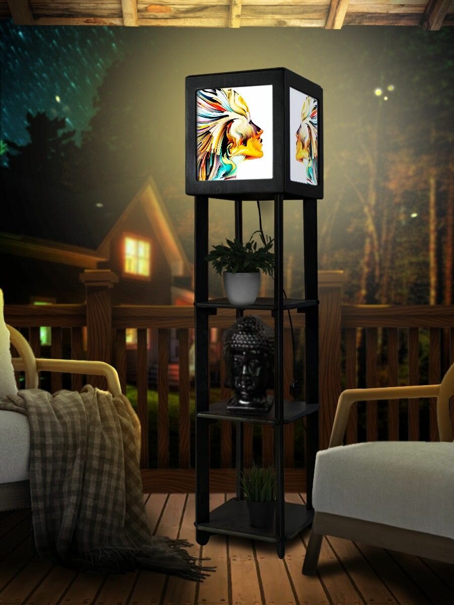 Купить Напольная лампа с полками квадратная, напольный светильник с принтом эзотерика близнецы (абстракция, узоры) - 3021
