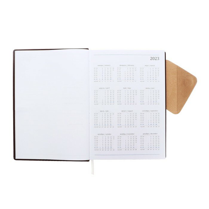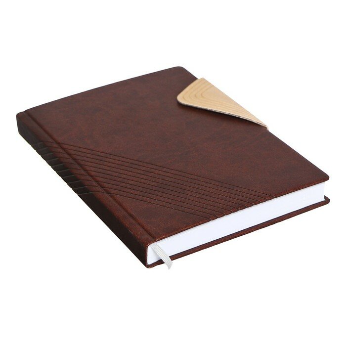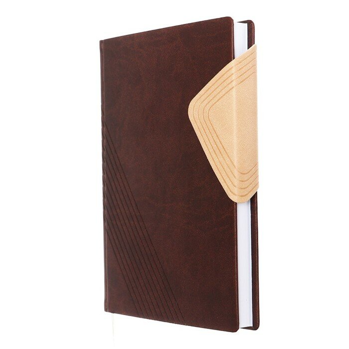 Ежедневник 205х150 мм 168 листов, кожзам, блок 70 г/м2, ляссе, магнитный хлястик, коричневый интересное: