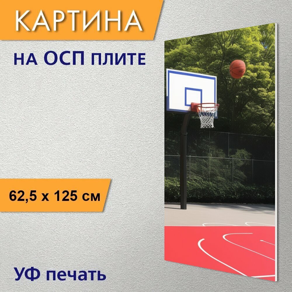 Вертикальная картина на ОСП для любителей спорта "Спортивные игры, баскетбол, поле" 62x125 см. для интерьера на стену интересное:
