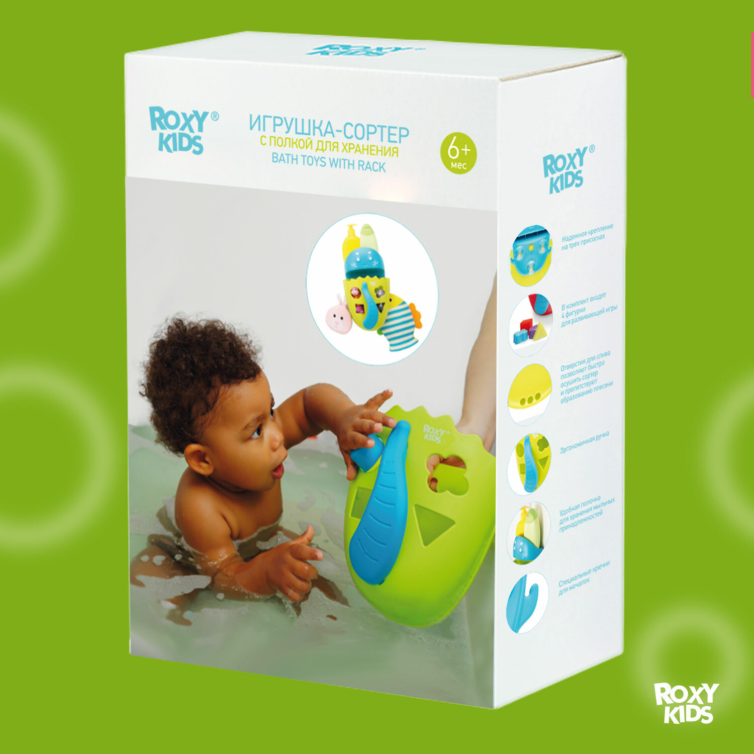 Органайзер-сортер Roxy-Kids Dino для игрушек и банных принадлежностей, зеленый