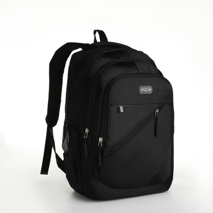 Купить Рюкзак молодёжный из текстиля на молнии, 5 карманов, цвет чёрный/серый