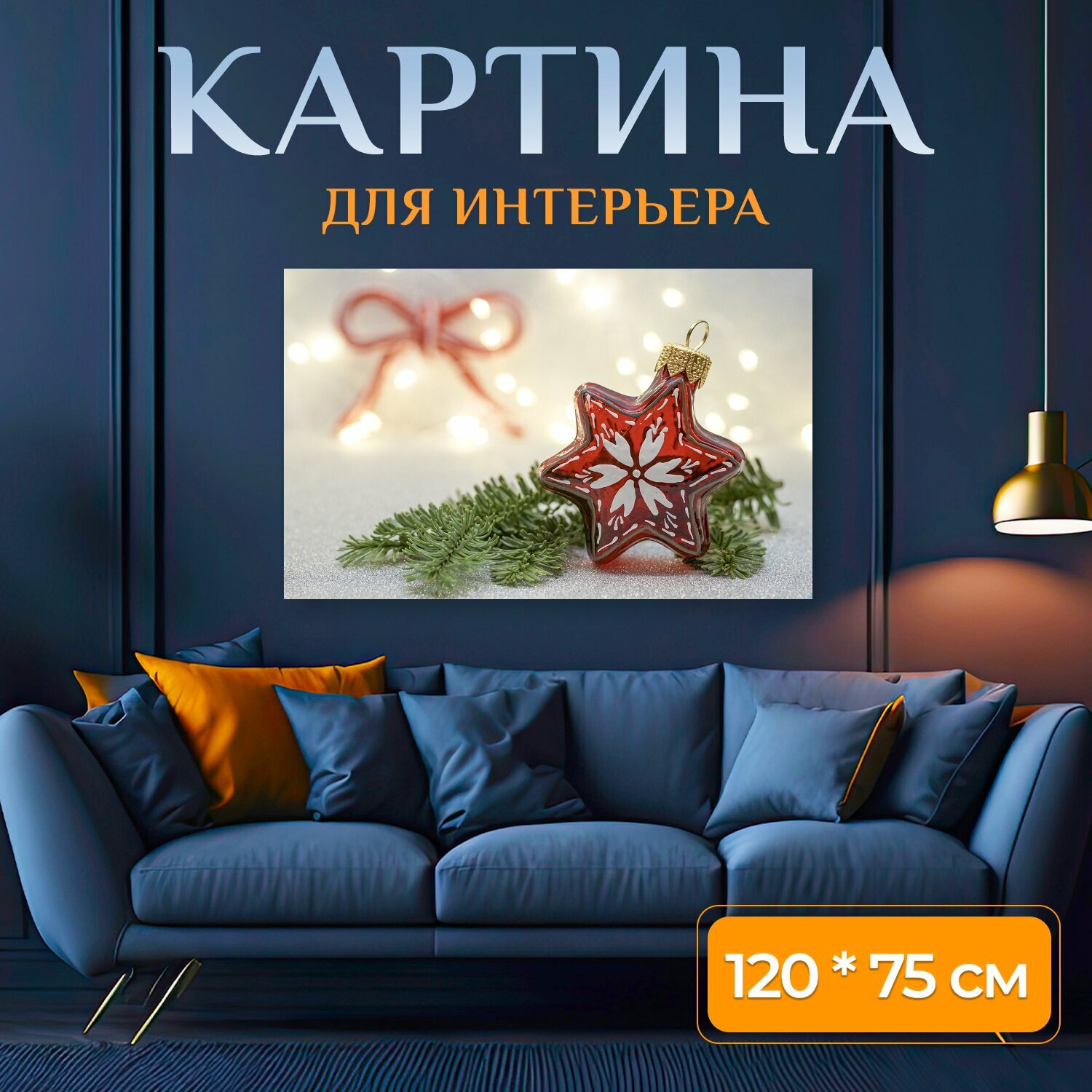 Картина на холсте "Рождество, рождественские украшения, рождественская звезда" на подрамнике 120х75 см. для интерьера интересное: