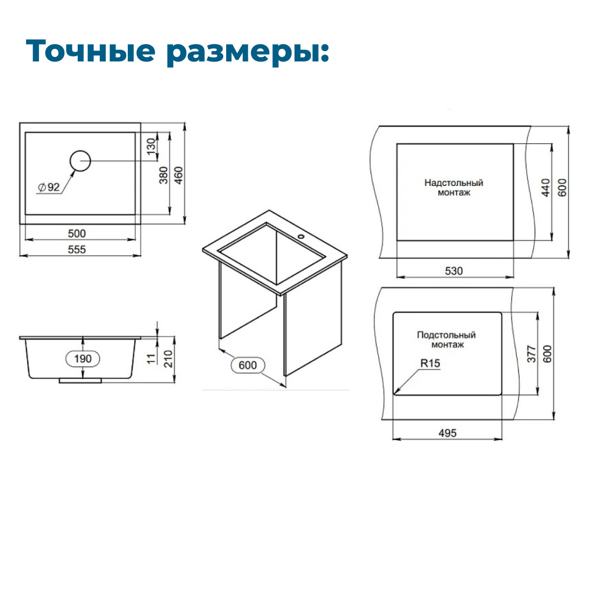 5551, графит (чёрно-серый), кухонная мойка, кварц