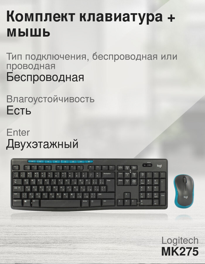 Ниже Вы можете прочитать отзывы на Комплект клавиатура + мышь Logitech Wireless Combo MK275, черный/голубой, ознакомится с подробными характеристиками, посмотреть интересные обзоры и фотографии на Комплект клавиатура + мышь Logitech Wireless Combo MK275, черный/голубой.