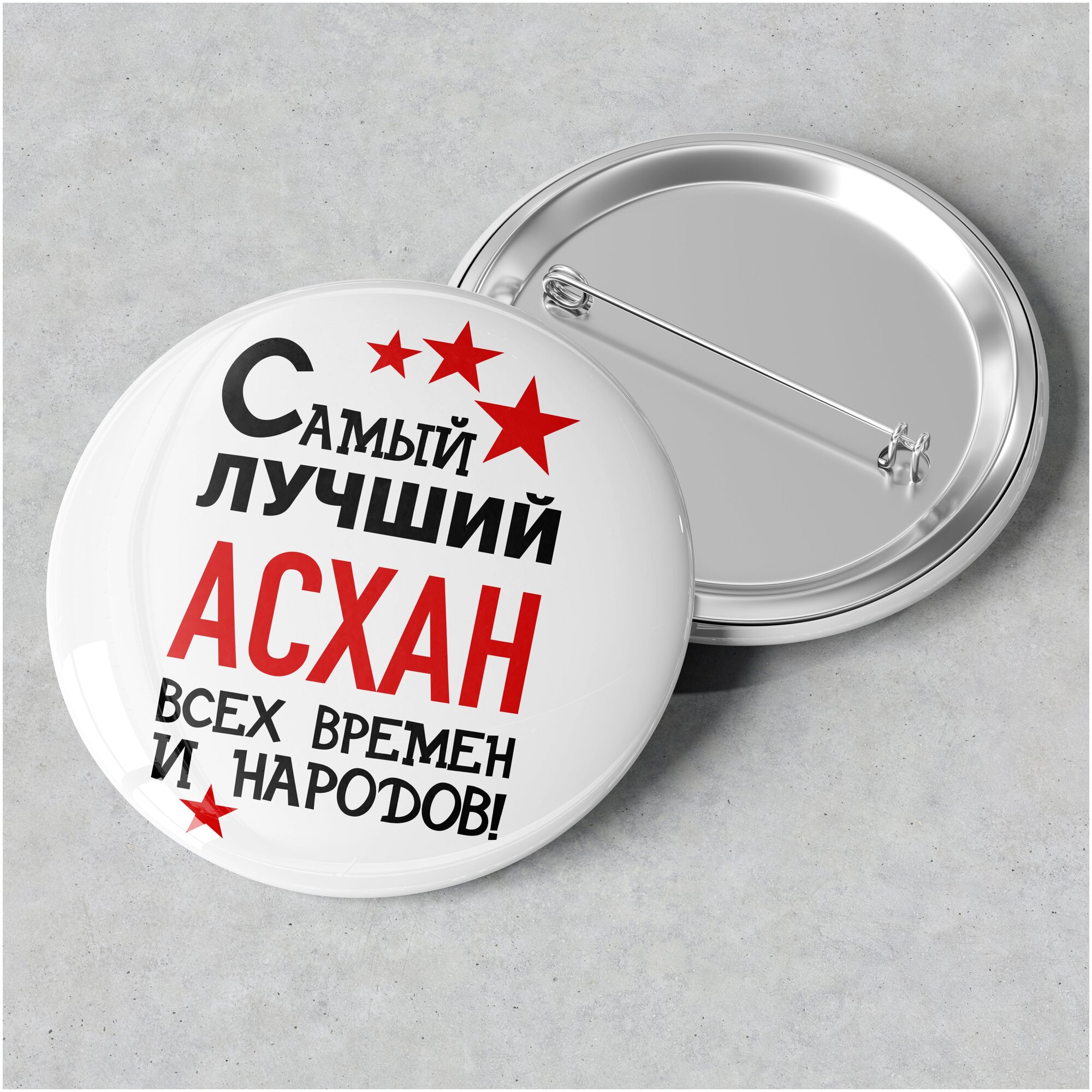 Купить Значок именной с надписью, принт Самый лучший Асхан всех времен и народов, значок прикол на рюкзак, в подарок, 56 мм