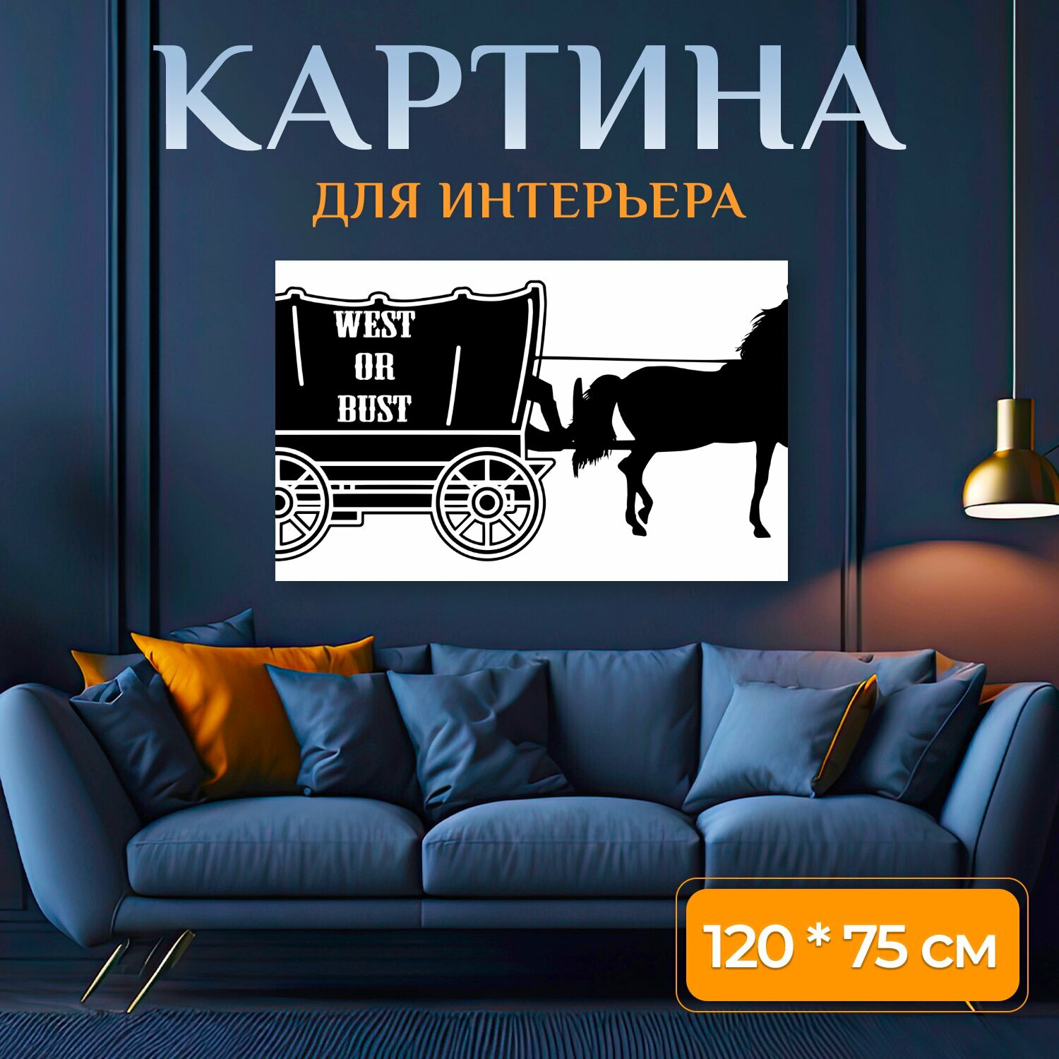 Картина на холсте "Крытый вагон, западный, дикий запад" на подрамнике 120х75 см. для интерьера интересное: