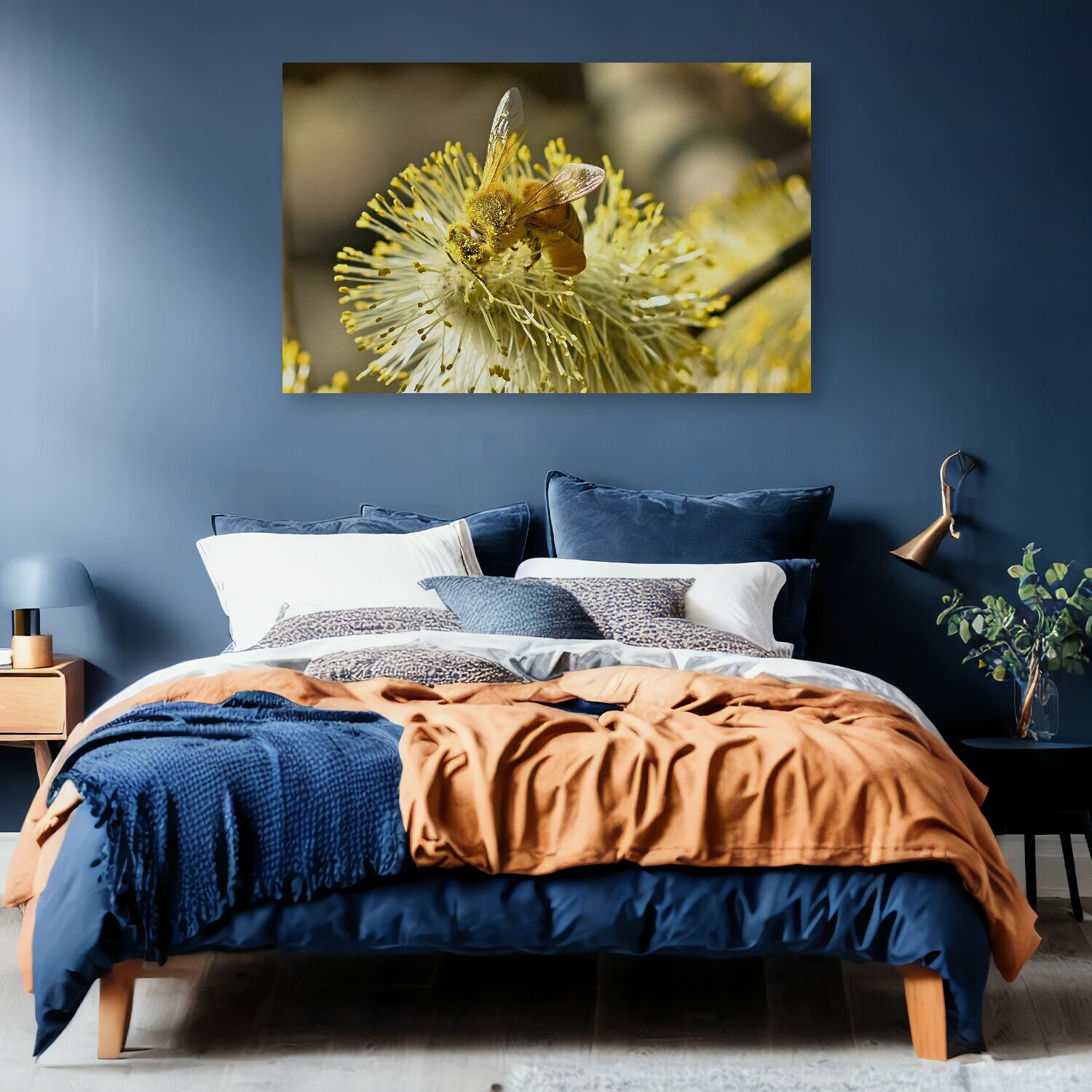 Картина на холсте "Пчела, сережки вербы, цветочная пыльца" на подрамнике 120х75 см. для интерьера интересное: