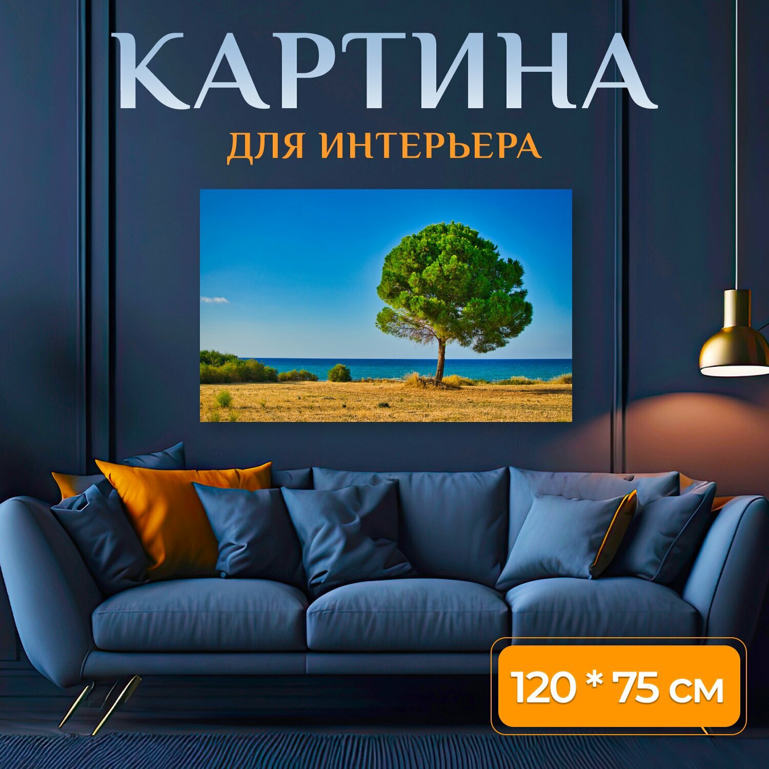 Картина на холсте "Дерево, пейзаж, море" на подрамнике 120х75 см. для интерьера интересное: