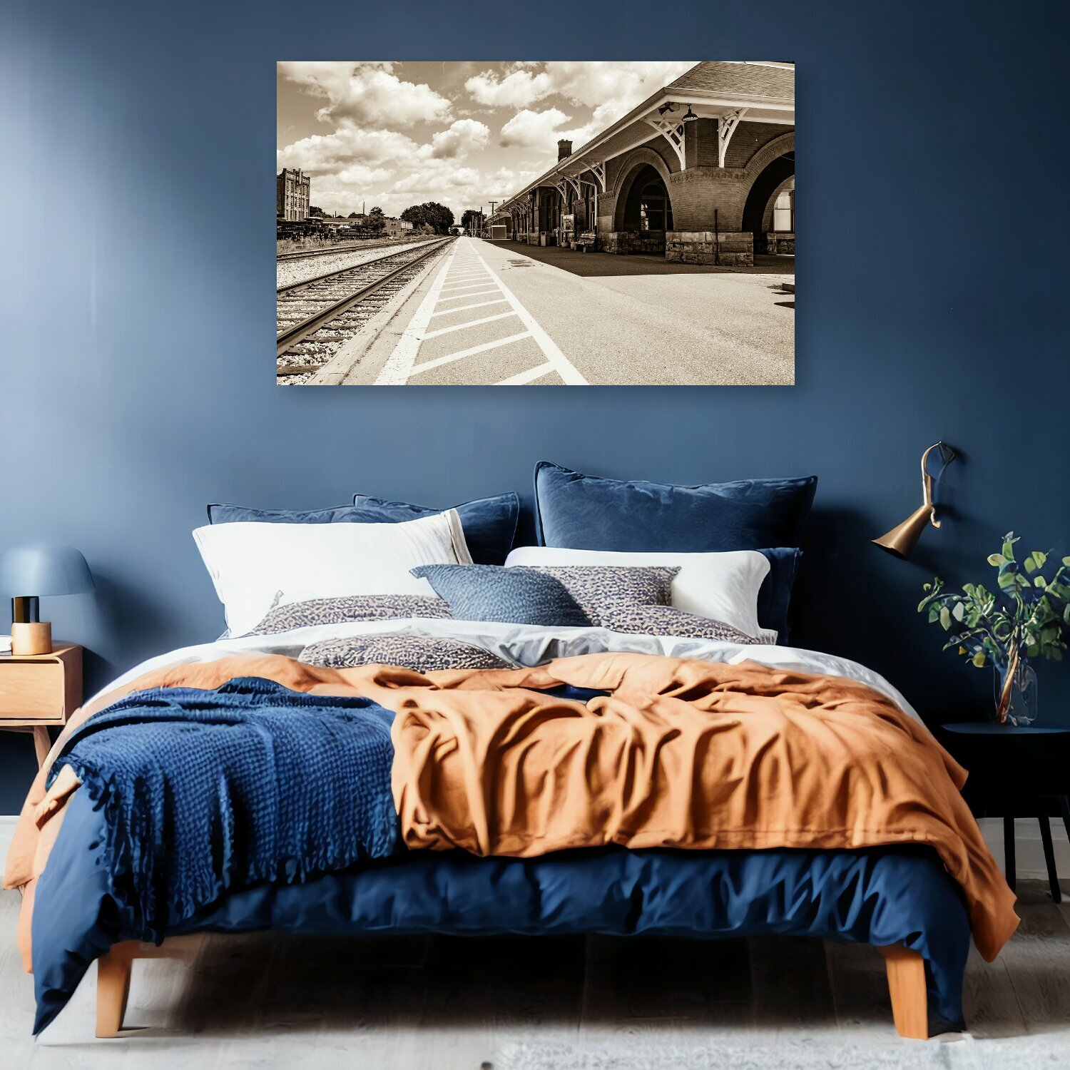 Картина на холсте "Железная дорога, железнодорожный вокзал, железнодорожная станция" на подрамнике 120х75 см. для интерьера интересное: