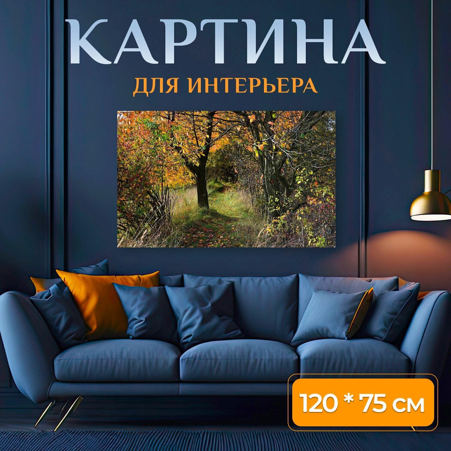 Картина на холсте "Осень, лес, дорожка" на подрамнике 120х75 см. для интерьера интересное: