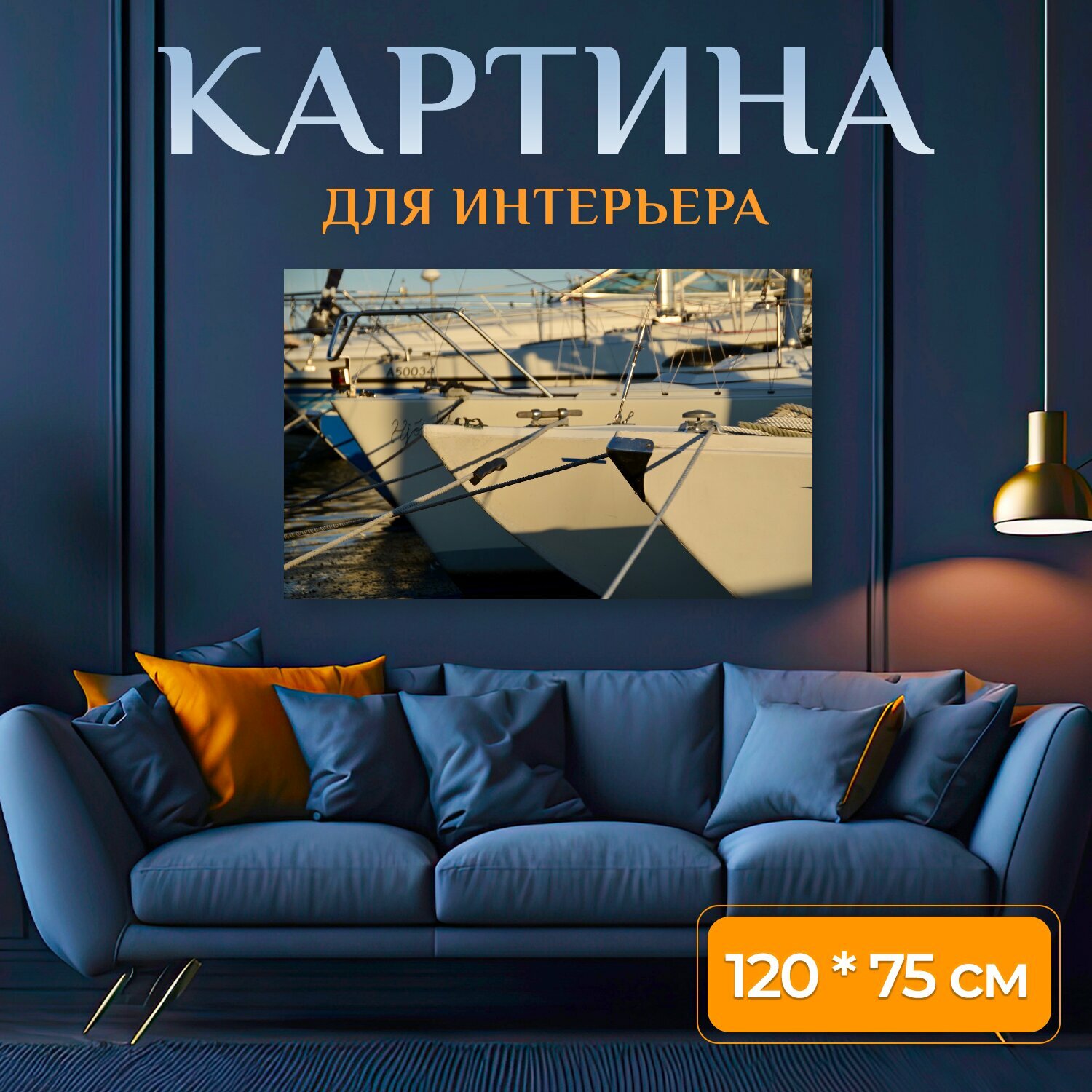 Картина на холсте "Лодки, парусные лодки, вечер" на подрамнике 120х75 см. для интерьера интересное: