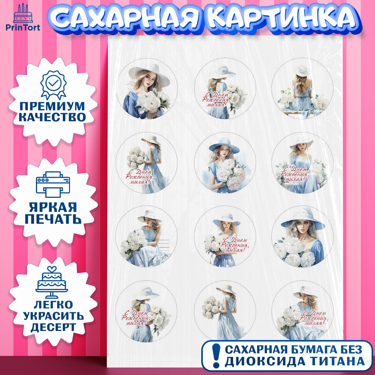 Купить Сахарная картинка для торта Девушке. Украшения для торта девушке на День Рождения. Декор для выпечки PrinTortPT113598