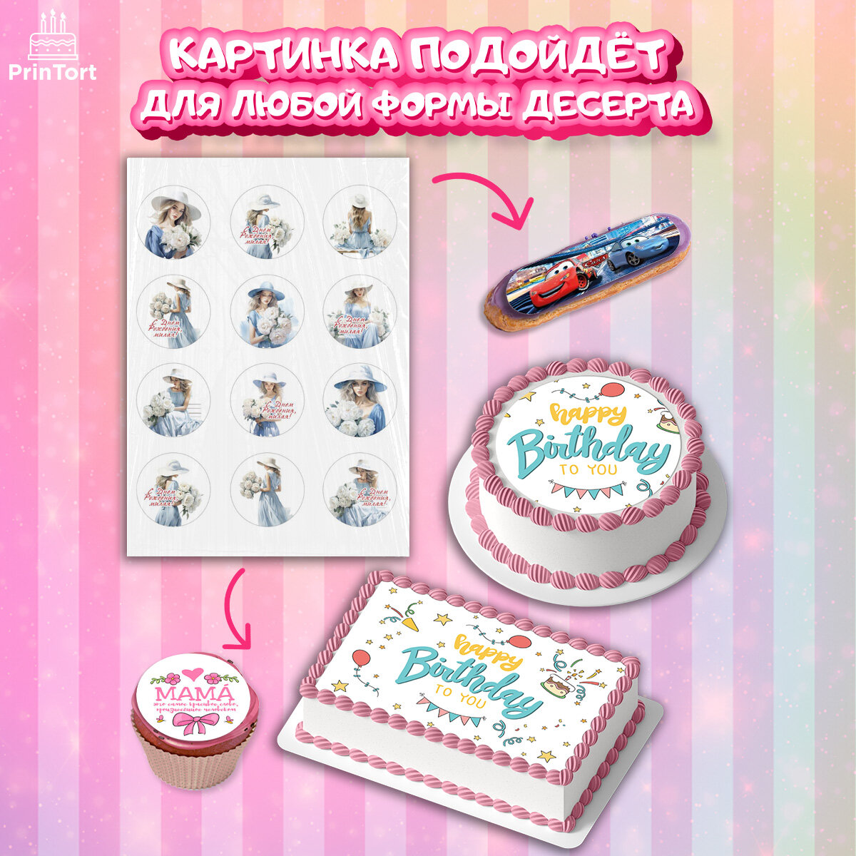 Сахарная картинка для торта Девушке. Украшения для торта девушке на День Рождения. Декор для выпечки PrinTortPT113598 интересное: