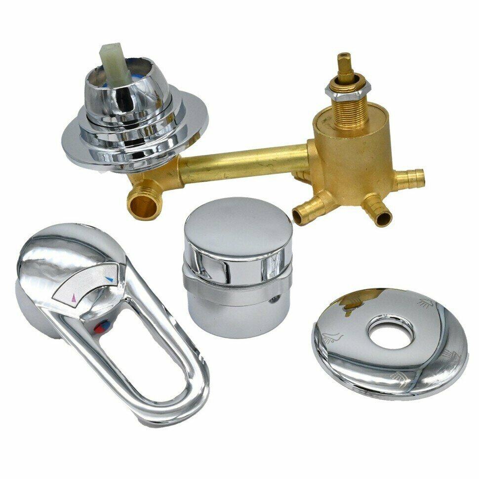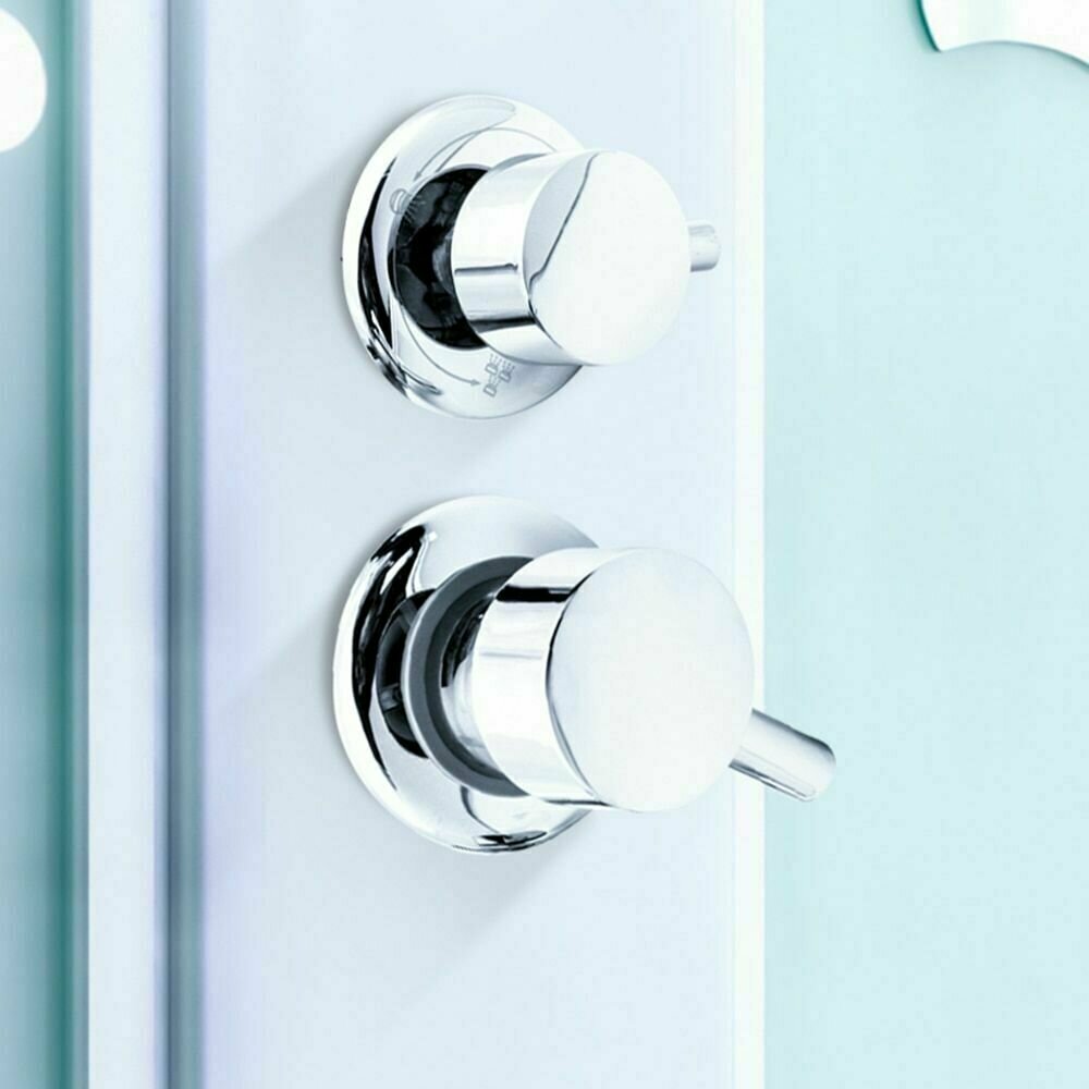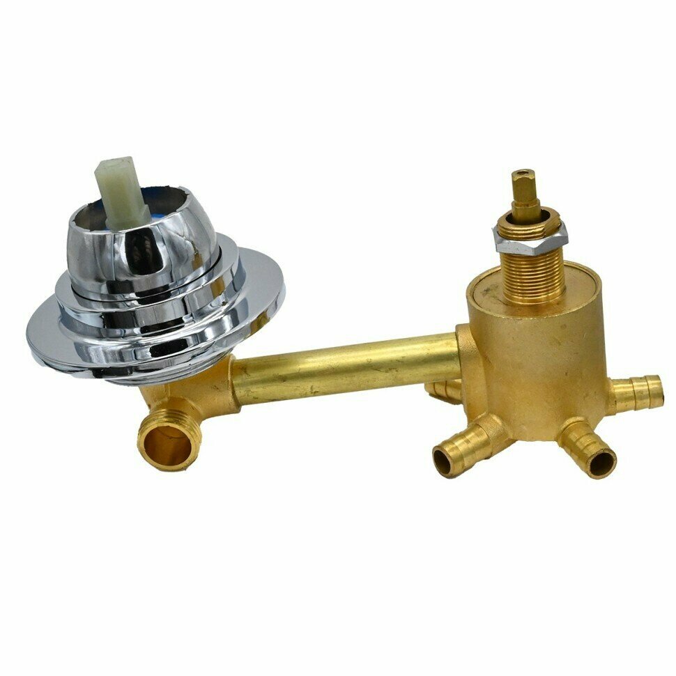 5* 100 Штуцер смеситель душевой кабины 5 режимов, ручки металлические, керамические картриджи с силиконовыми уплотнениями, корпус 100 мм, латунный корпус под хомут, цвет хром глянцевый интересное: