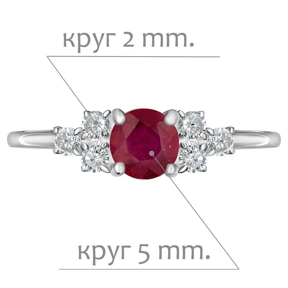 Серебряное кольцо с натуральным рубином - коллекция Нова / Белый Родий (размер 19.5)
