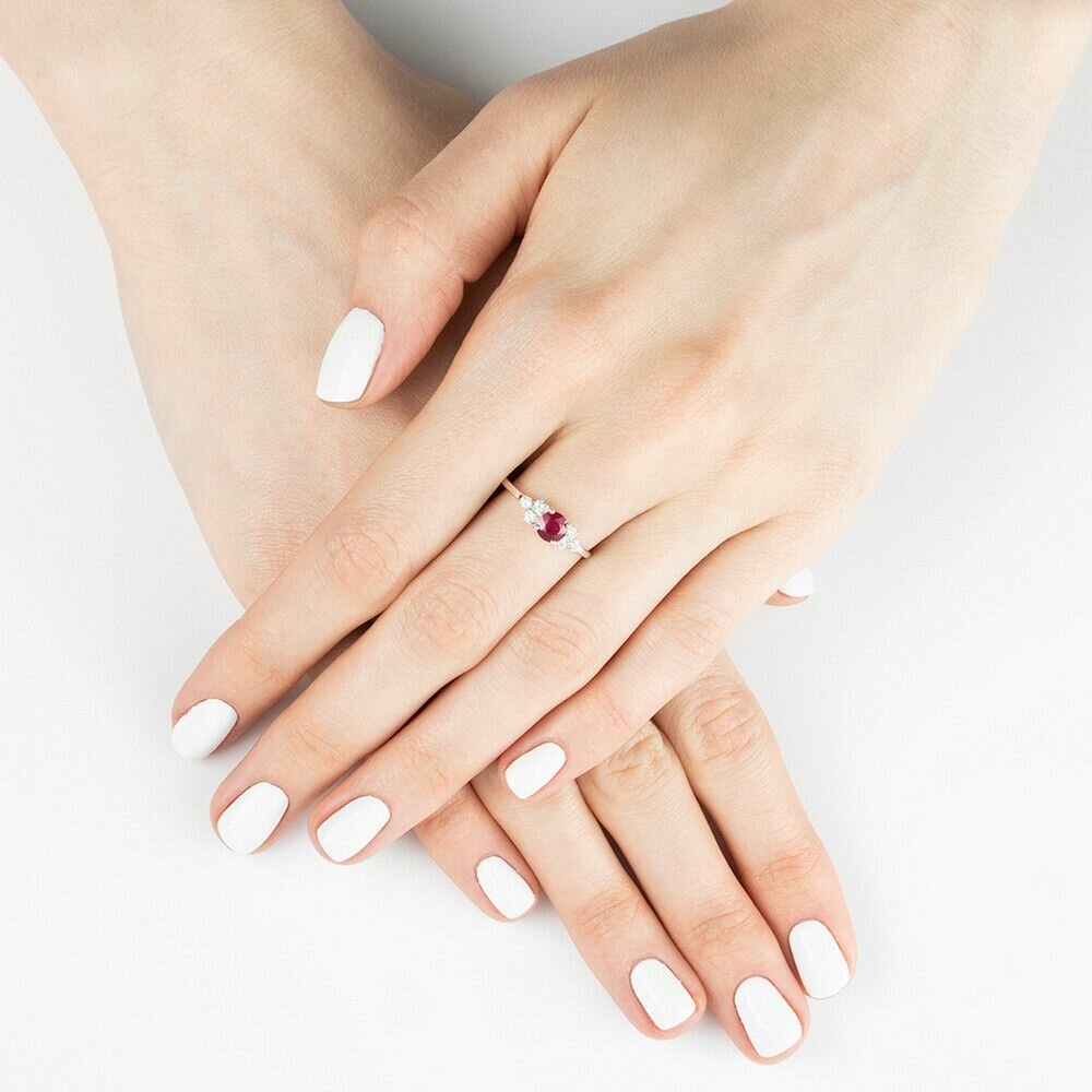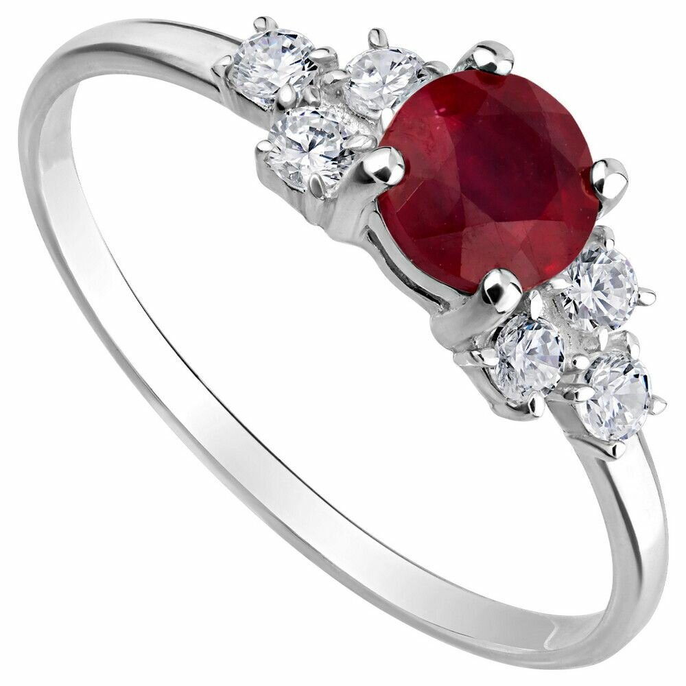 Купить Серебряное кольцо с натуральным рубином - коллекция Нова / Белый Родий (размер 17)
