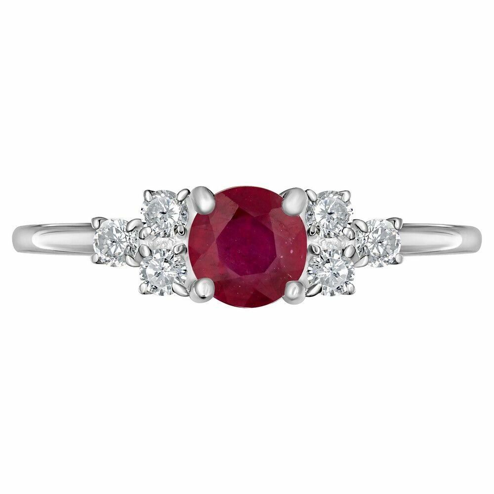 Серебряное кольцо с натуральным рубином - коллекция Нова / Белый Родий (размер 18)