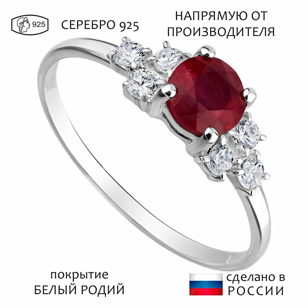 Серебряное кольцо с натуральным рубином - коллекция Нова / Белый Родий (размер 18.5)