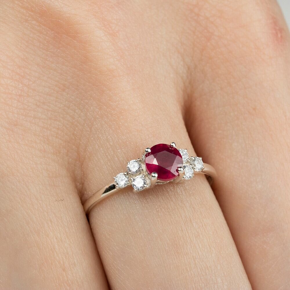 Купить Серебряное кольцо с натуральным рубином - коллекция Нова / Белый Родий (размер 18.5)