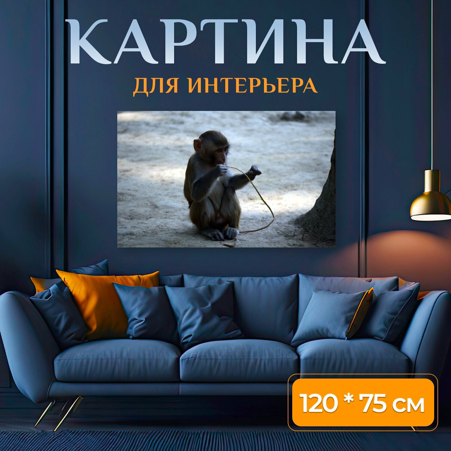 Картина на холсте "Обезьяна, детка, макака" на подрамнике 120х75 см. для интерьера интересное: