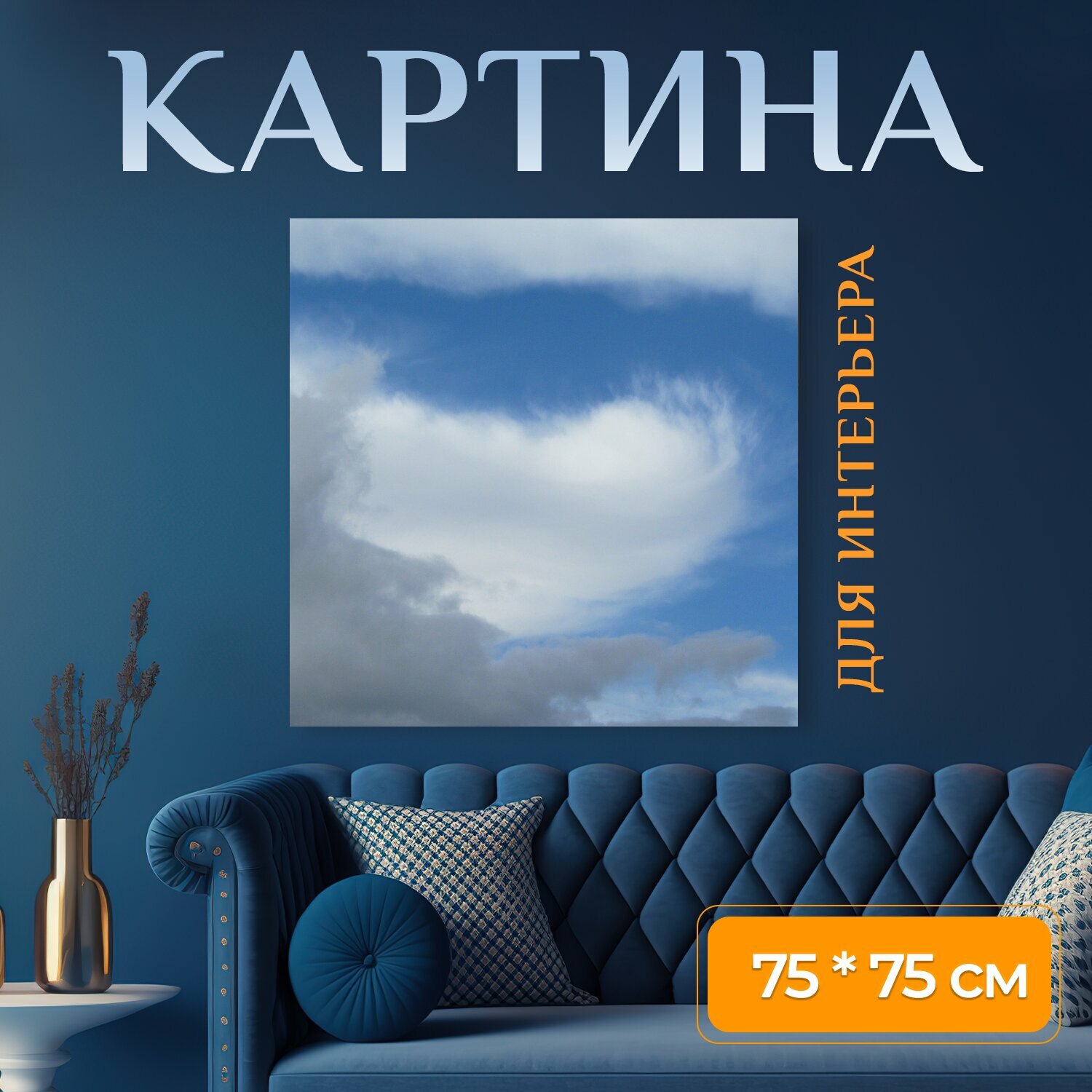 Картина на холсте "Облако, небеса, синий" на подрамнике 75х75 см. для интерьера интересное: